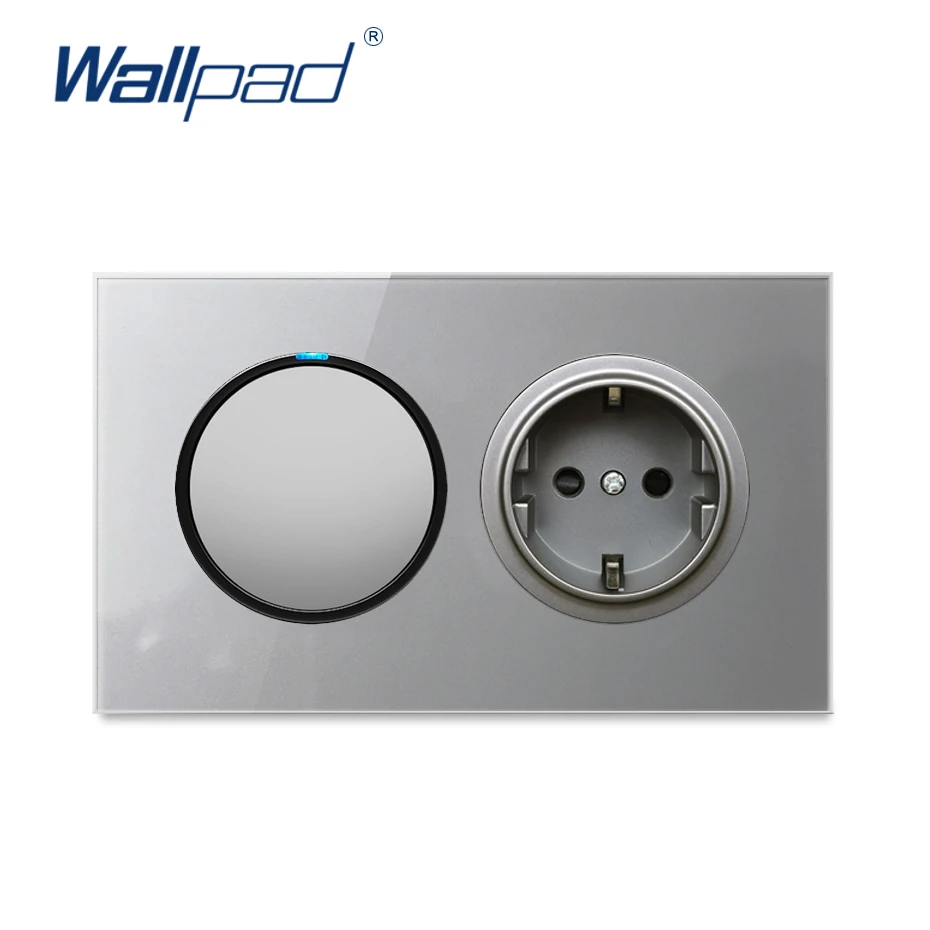 Настенная розетка Wallpad, электрическая розетка европейского стандарта с 1 клавишей, двухсторонний выключатель света, серая прозрачная рамка из закаленного стекла, 146*86 мм