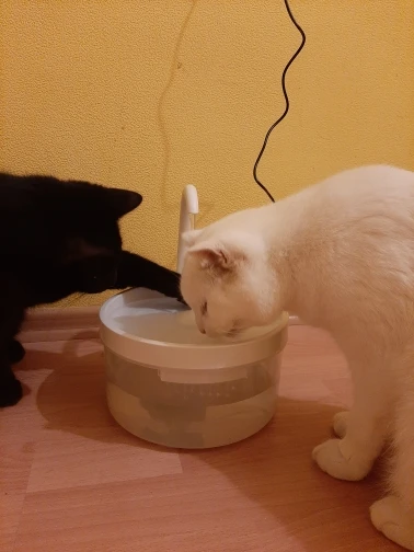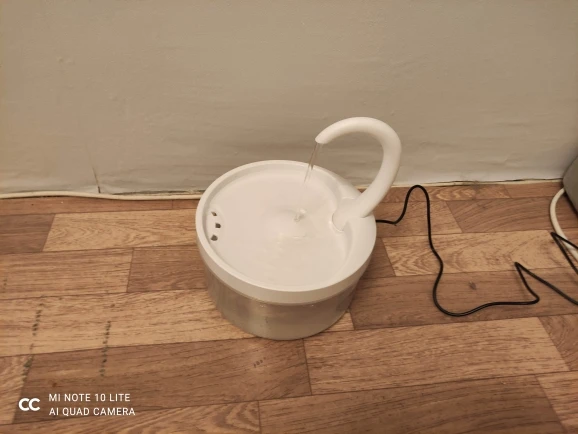отличная поилка,работает бесшумно.отпала необходимость постоянно включать кошакам воду с крана