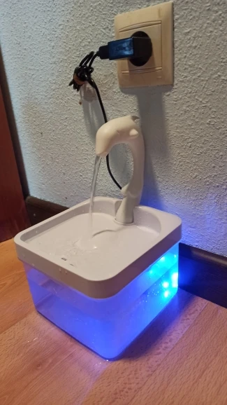 Отличный фонтан, бесшумный. Спасение для тех владельцев чьи коты предпочитают Пить воду только с крана. Минусов не нашла. Доставка очень быстрая и удобная. Рекомендую!