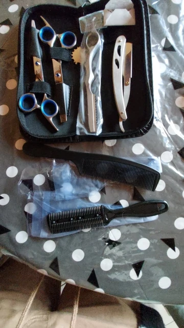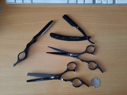 Ножницы режут хорошо, доставка во время. Но обратите внимание на размер и длинну самих ножниц, они в блинну коротковаты, и не подайдут для профессионалов, и сами ручки нозниц, только для маленькой изящной руки мастера, если у вас большая рука, то они вам е подайдут.