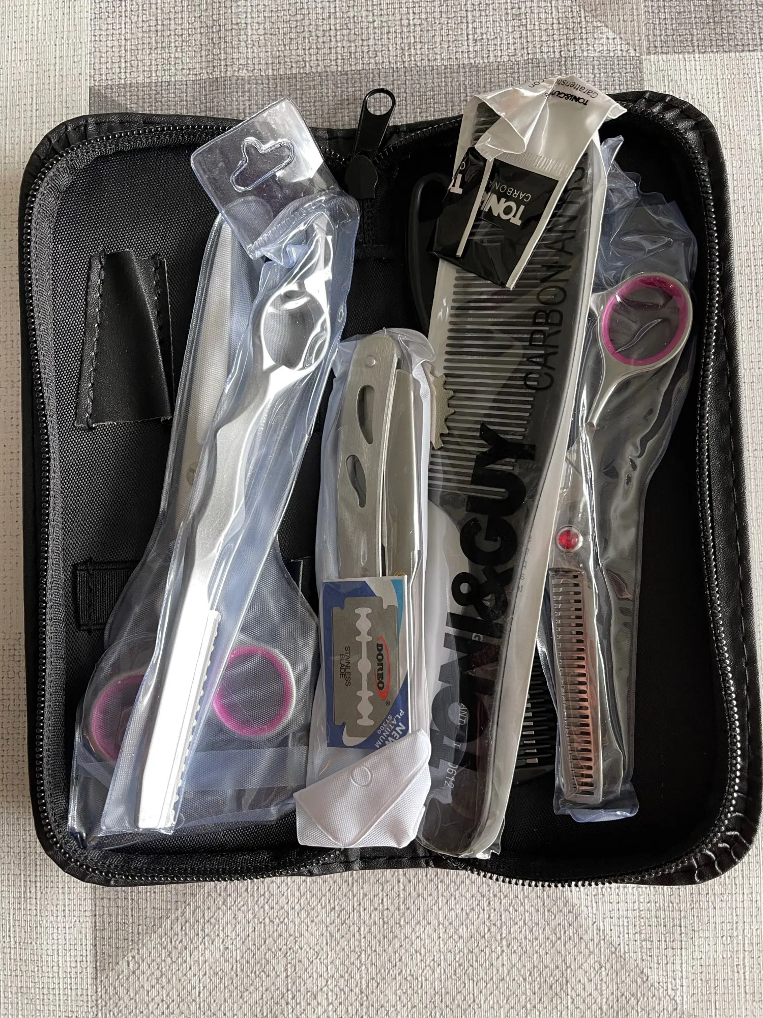 Очень доволен им. Приятный материал. Не важно, но ножницы поставляются в разных цветах.