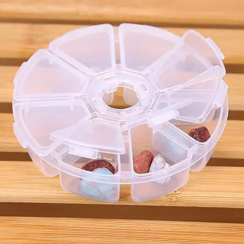 Круглая коробка для хранения с 8 сетками может помочь сохранить ювелирные изделия, рыболовные аксессуары, медицин и так далее.