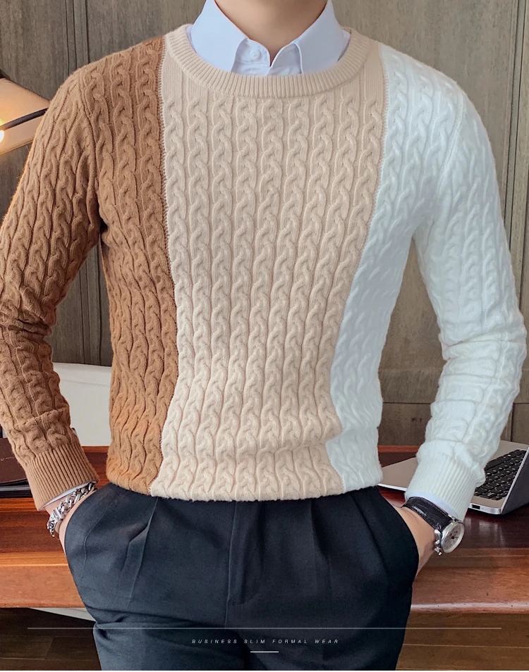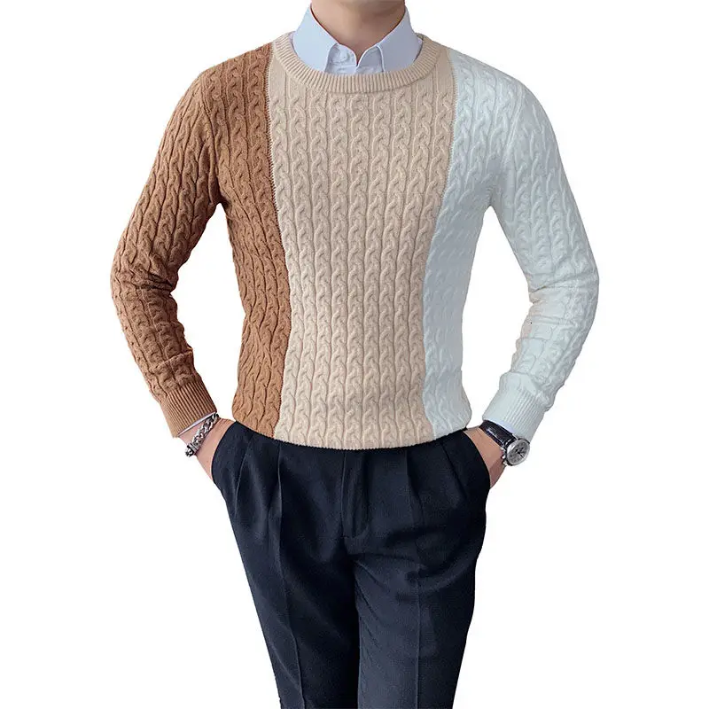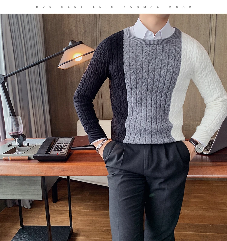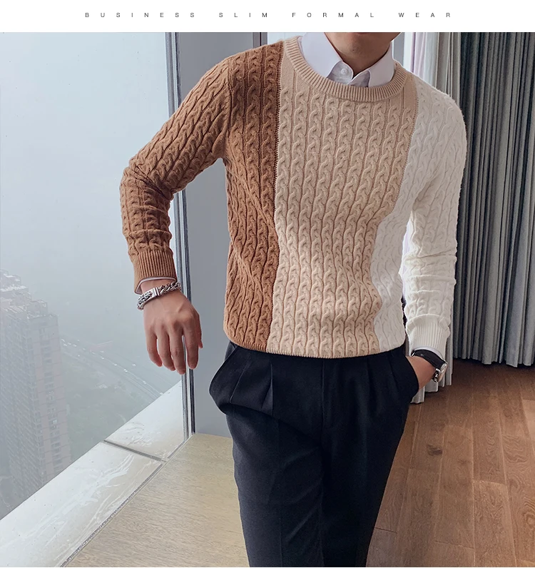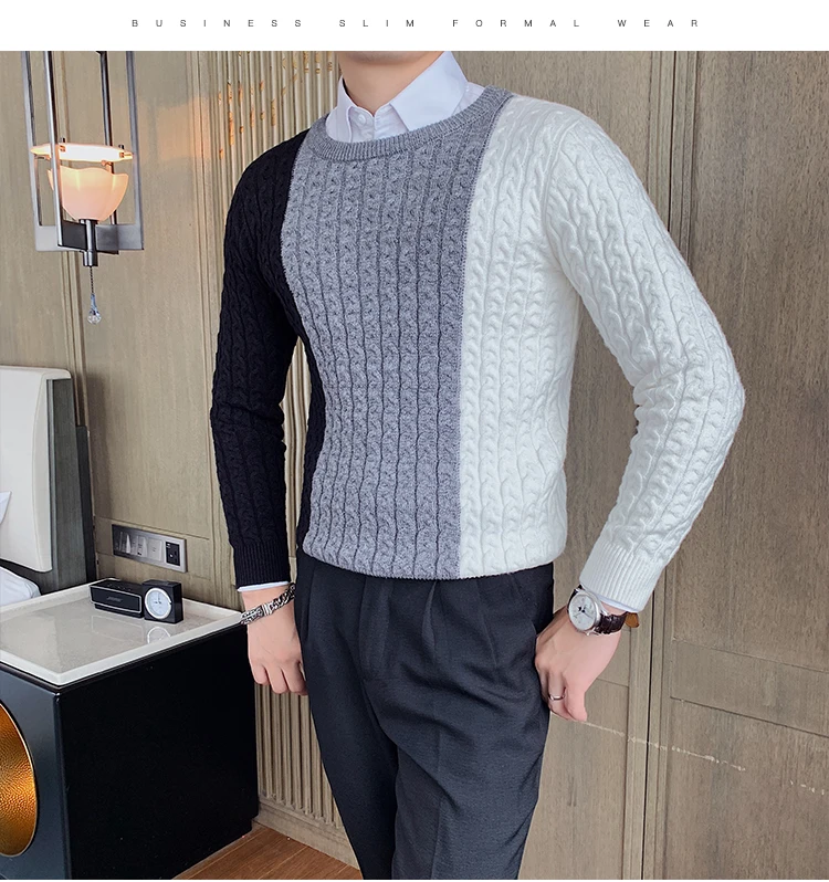 Комбинированный толстый свитер для мужчин; Толстый свитер; Пуловер с круглым вырезом; Повседневный пуловер; Зимний вязаный свитер; Sueter Hombre