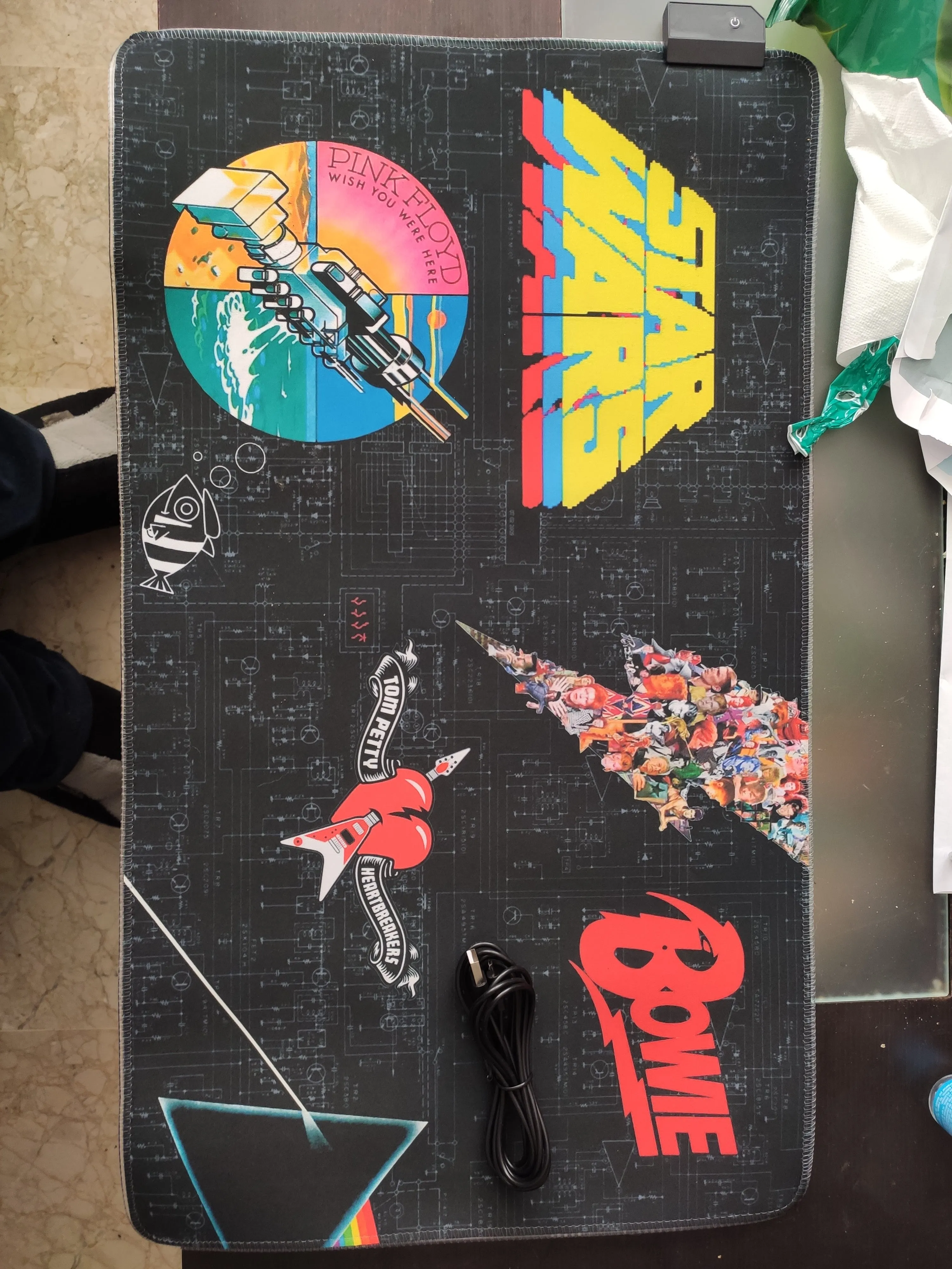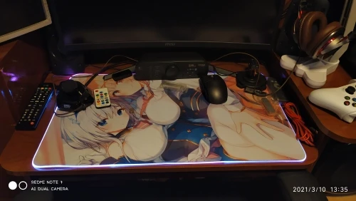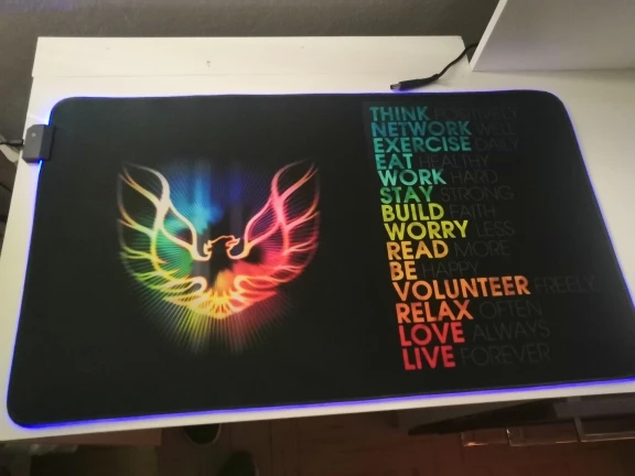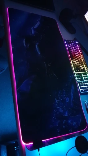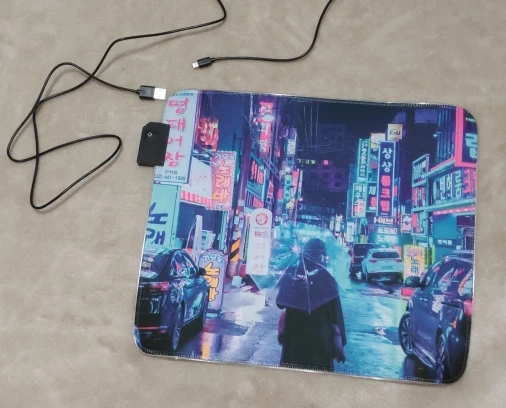 Отличное качество коврика и принта. Принт действительно темнее, чем изначальная картинка, это надо учитывать. Подсветка очень приятная, не мешает. Продавца рекомендую.