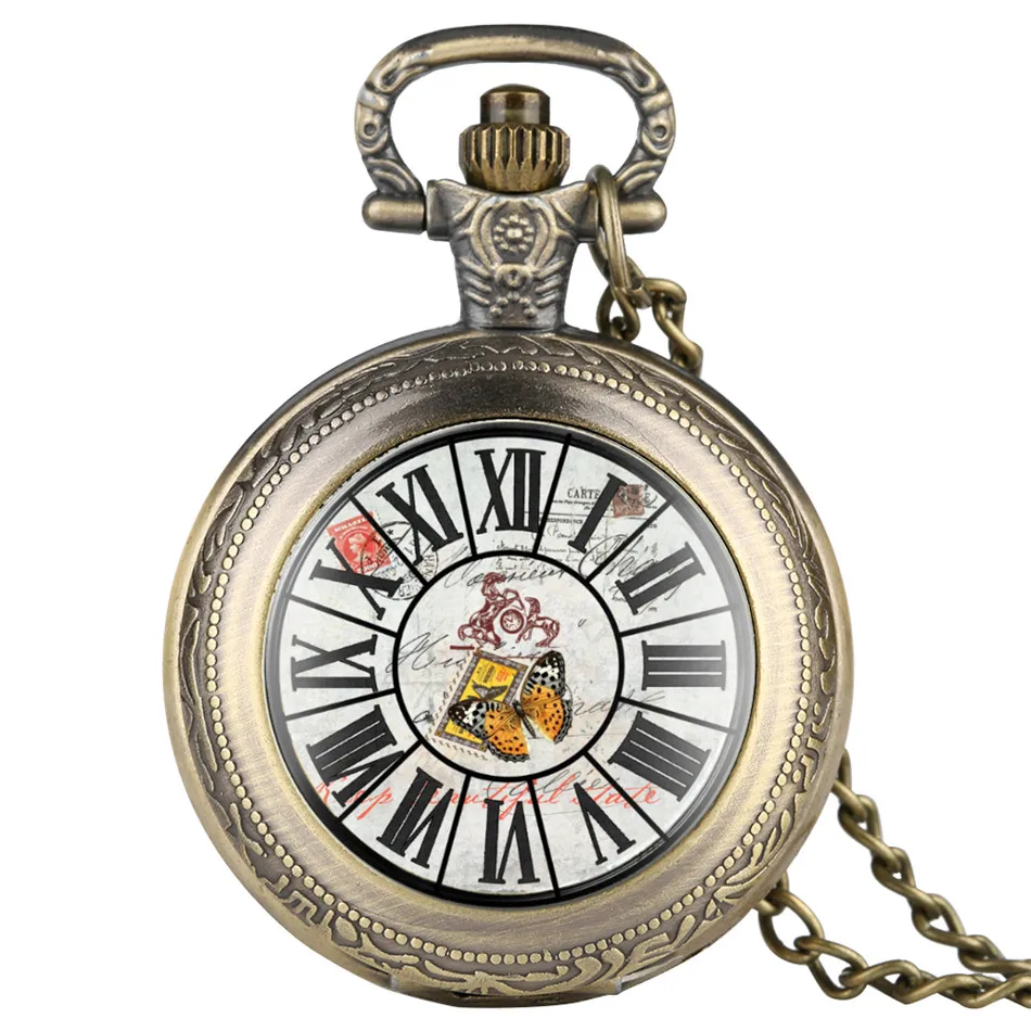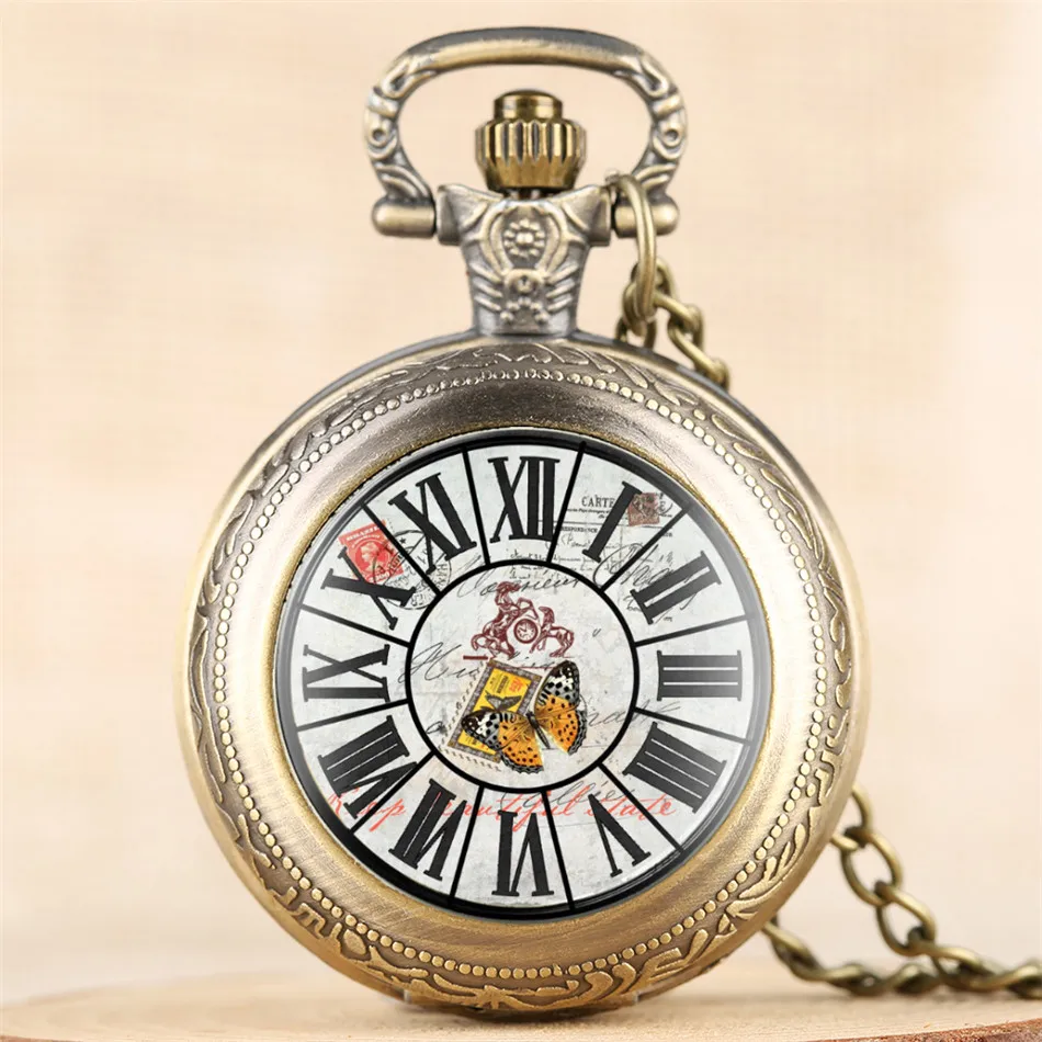 Винтажные кварцевые карманные часы с римскими цифрами и бронзовым ожерельем, новинка 2020