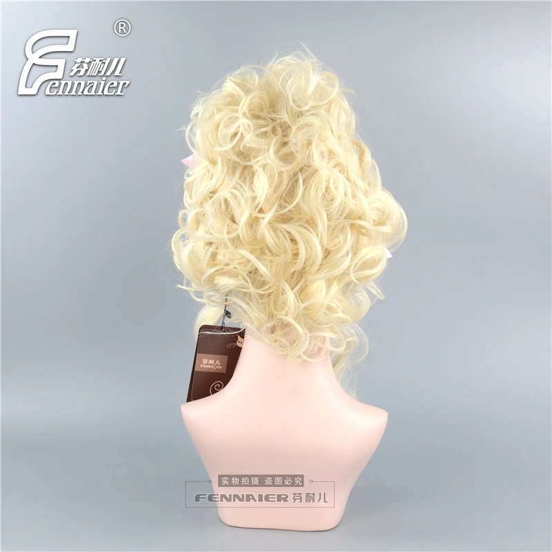 Посылка включает в себя: 1 парик + Бесплатный колпачок Ткань: высокотемпературное волокно Цвет: Золотой синтетический парик-светильник Уже стилизованный