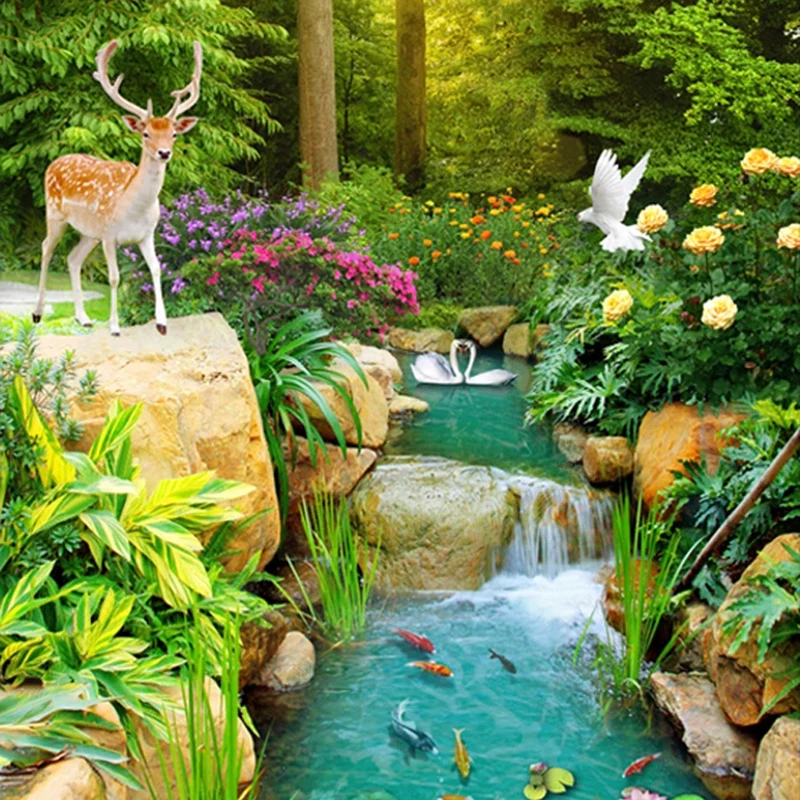 Пользовательские 3D фотообои HD Зеленый пейзаж водопад красивый ТВ ...