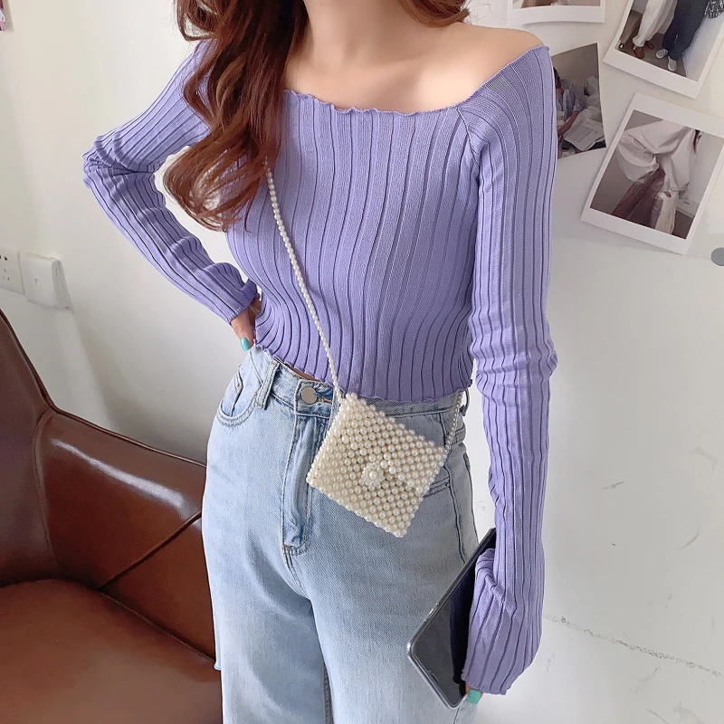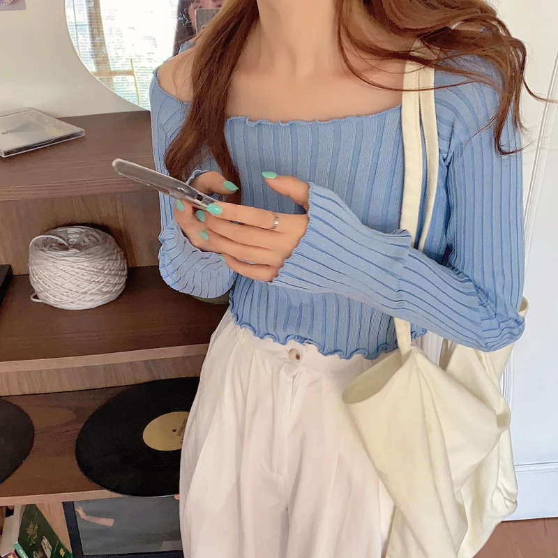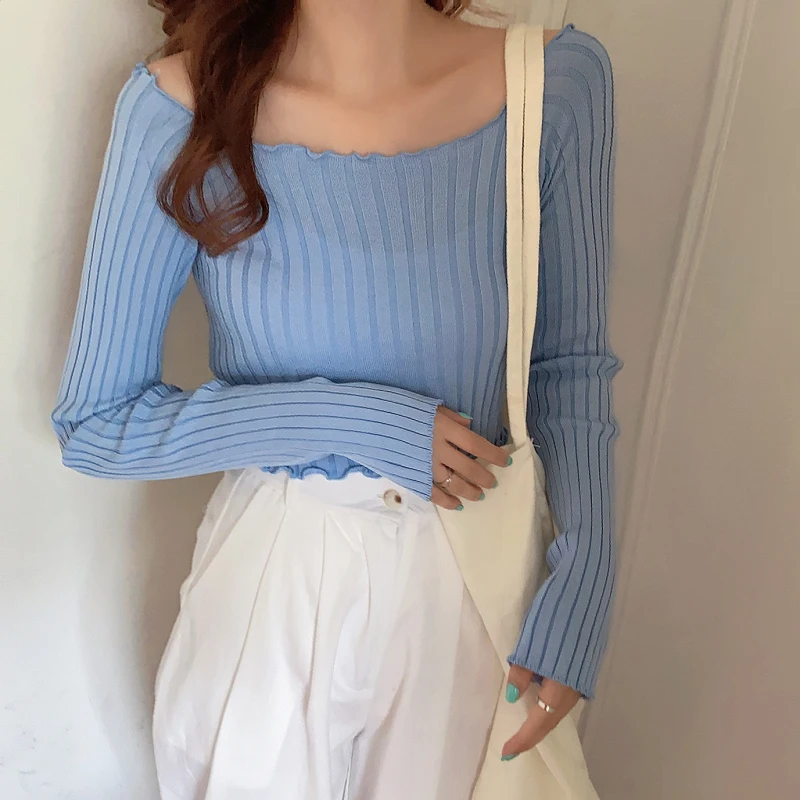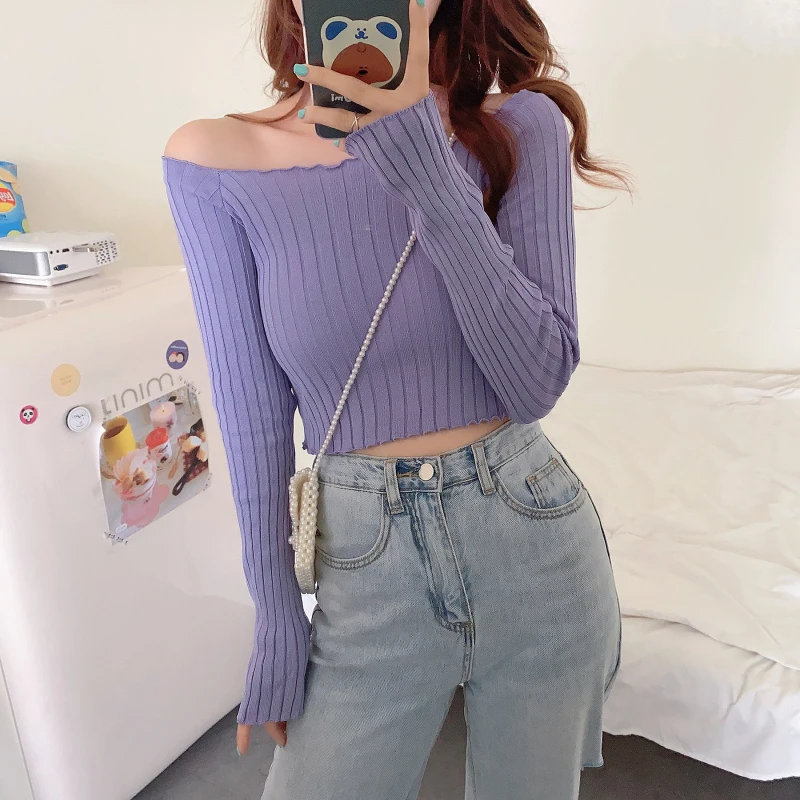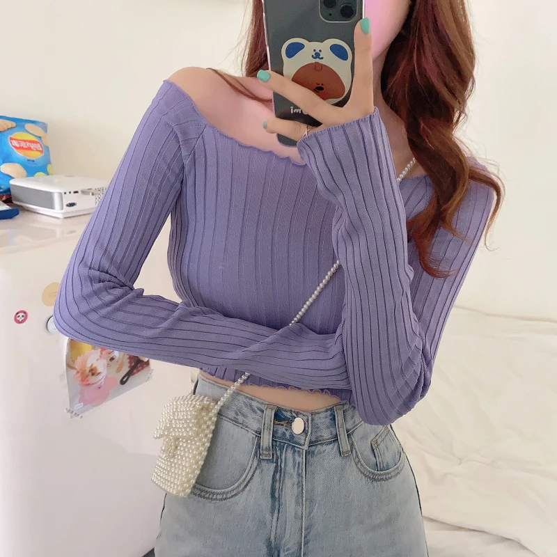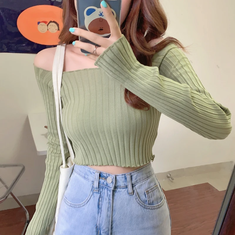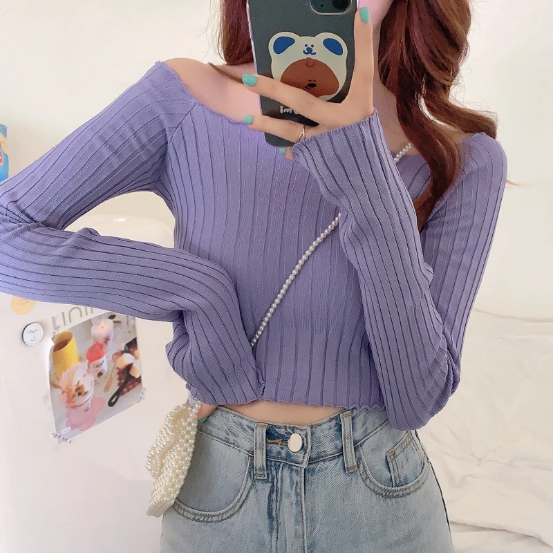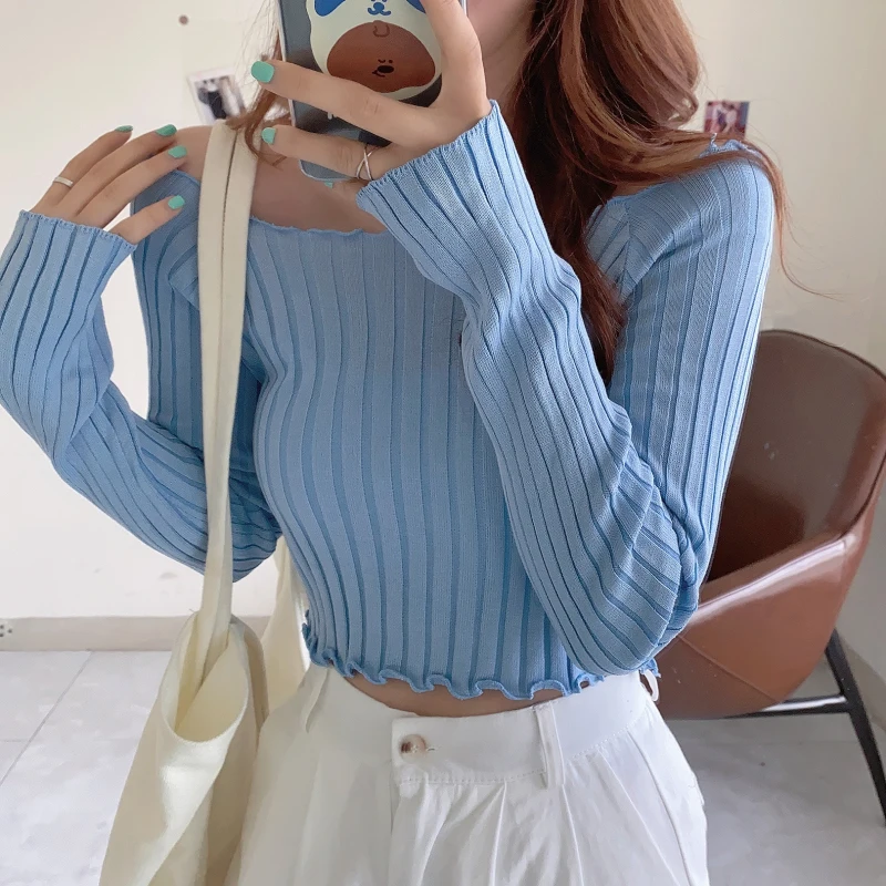 Блузка женская трикотажная однотонная с длинным рукавом, на веснулетоосень