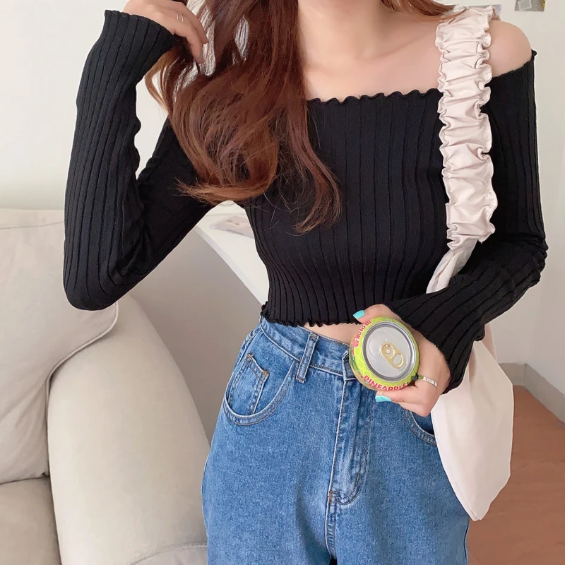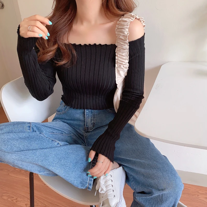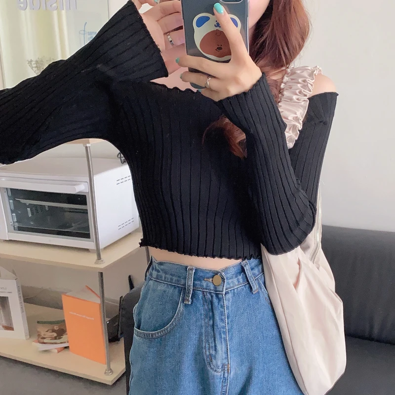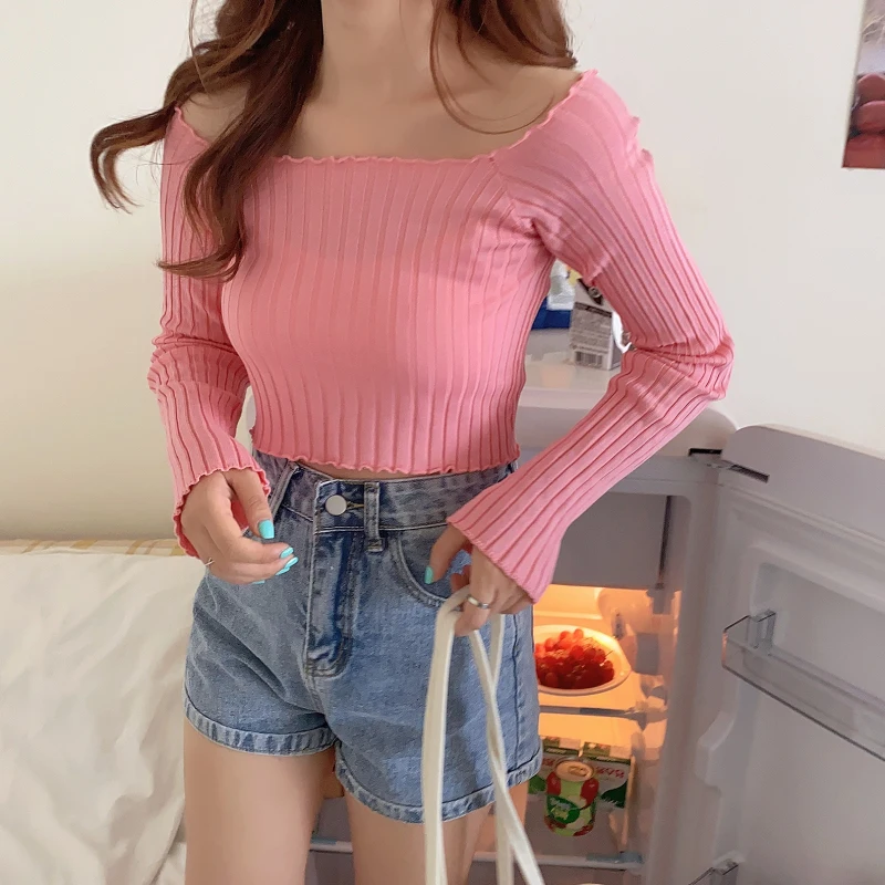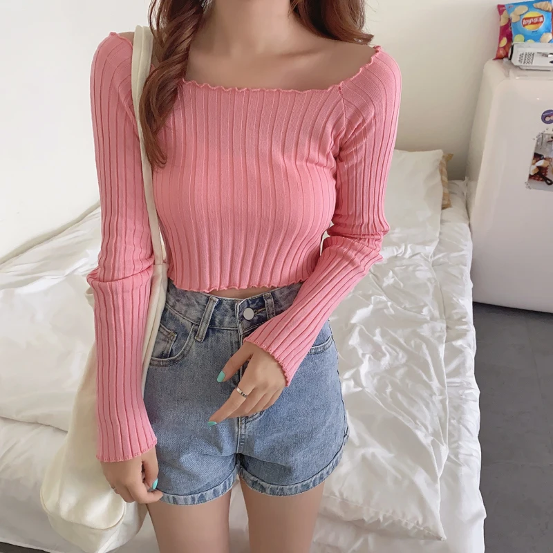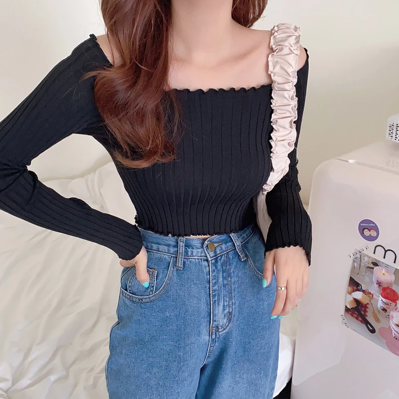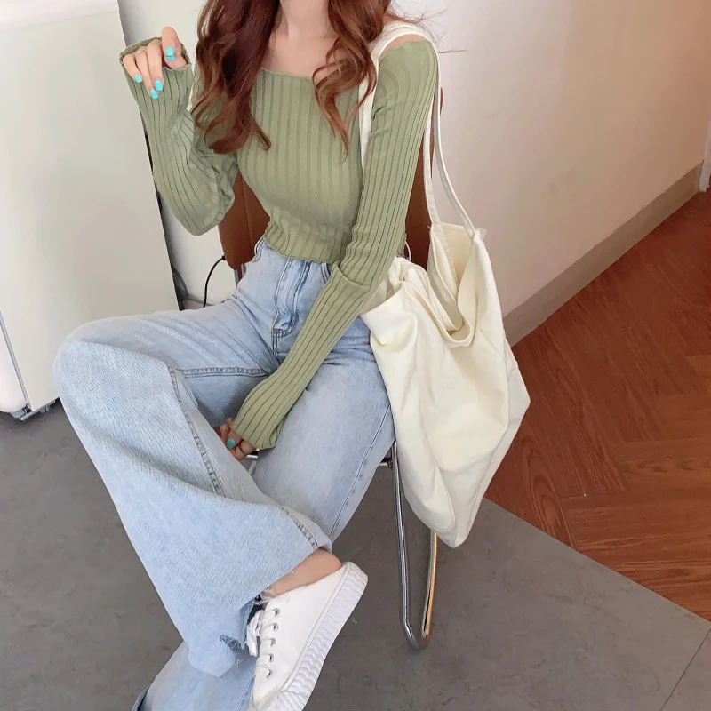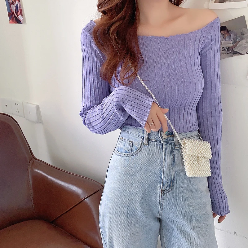 Блузка женская трикотажная однотонная с длинным рукавом, на веснулетоосень