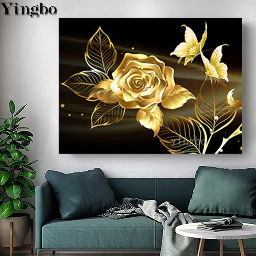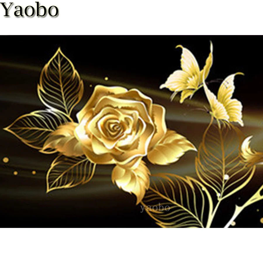 5D Diy алмазная живопись, полная квадратная Круглая Мозаика, Золотая Роза, цветок, Бабочка, Набор для вышивки крестиком, алмазная вышивка, распродажа, Новинка