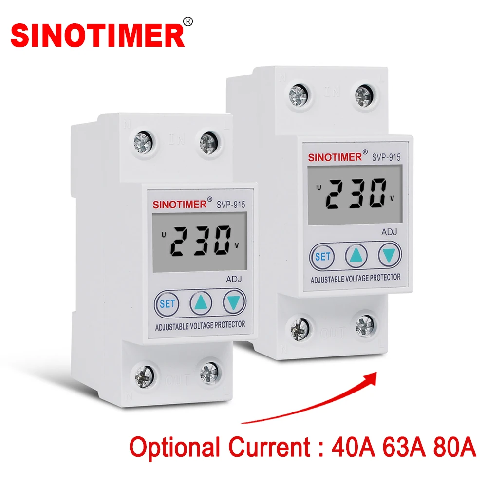 40A 63A 80A однофазный din-рейка LCD Цифровой Регулируемый протектор напряжения автоматическое повторное подключение устройство защиты от перенапряжения реле напряжения