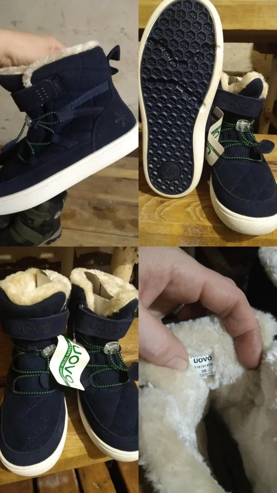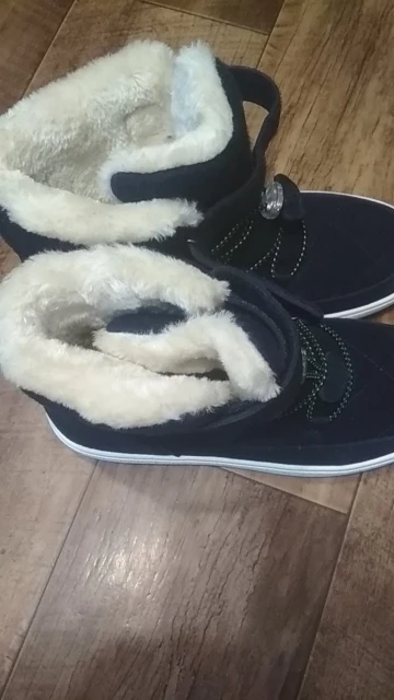 К сожалению ботинки пришли очень большие, но я сама заказала размер 4.5 это на 36 размер ошиблась нам их носить толь через 2 года когда нога подрастет. Что скажу качество хорошее мягкие теплые материал что замшы текстиль мех искусственный, а так рекомендую смотрите размерную сетку.