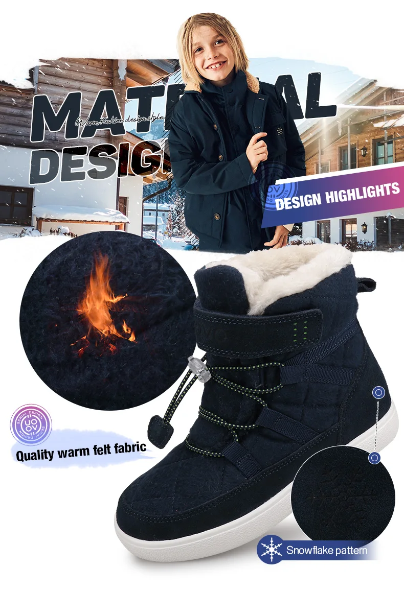 Детские ботинки UOVO, зимние теплые ботинки с плюшевой подкладкой, размеры 31-37
