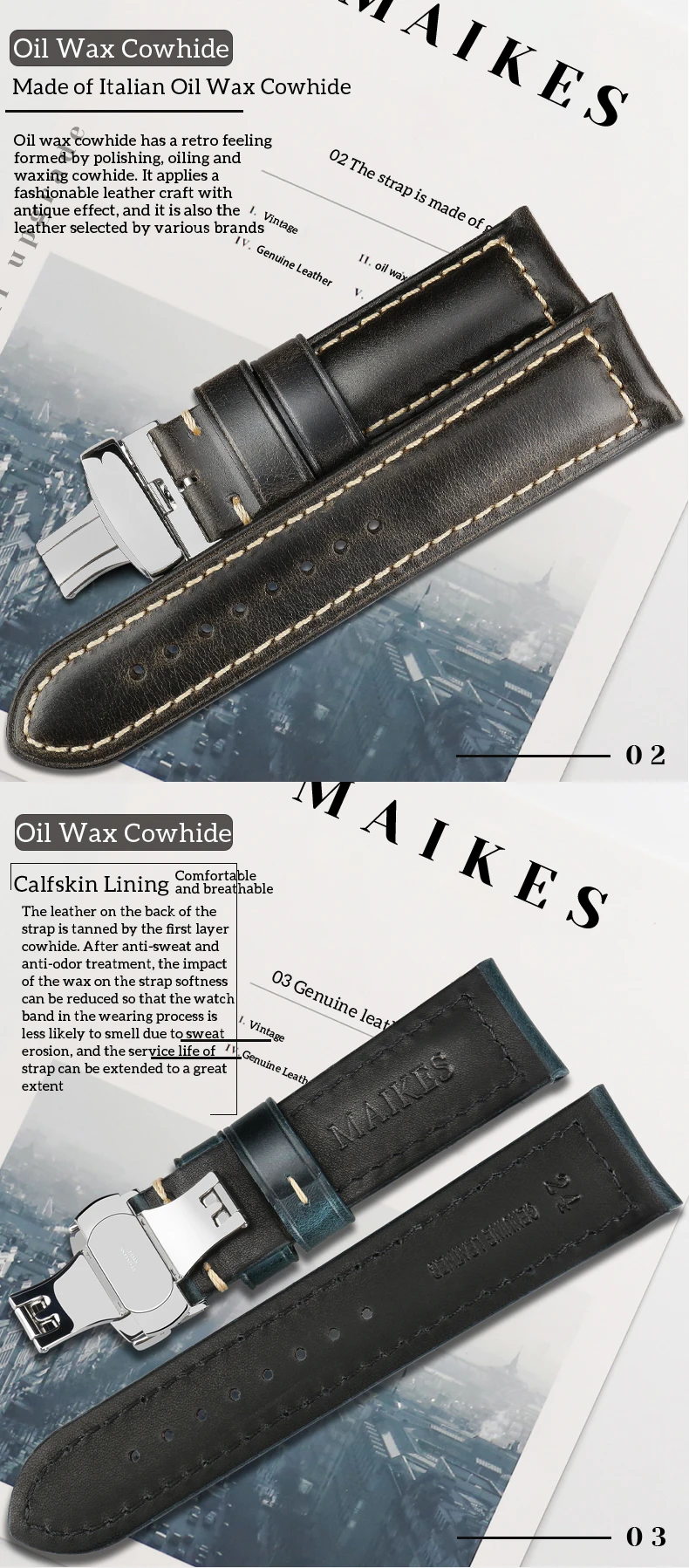 Ремешок MAIKES из натуральной кожи для наручных часов, браслет из т...