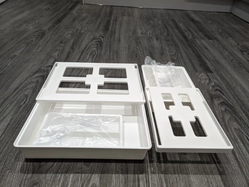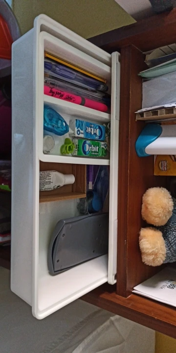 Ящики очень хорошие! Толстый пластик. Простая, но надёжная конструкция. Взяла для кухни 3 средних размера, т.к. они в сумме идеально подходят под размер. Под ложки, вилки и ножи. Клей естественно не держит совсем, муж прикрутил на саморезы.