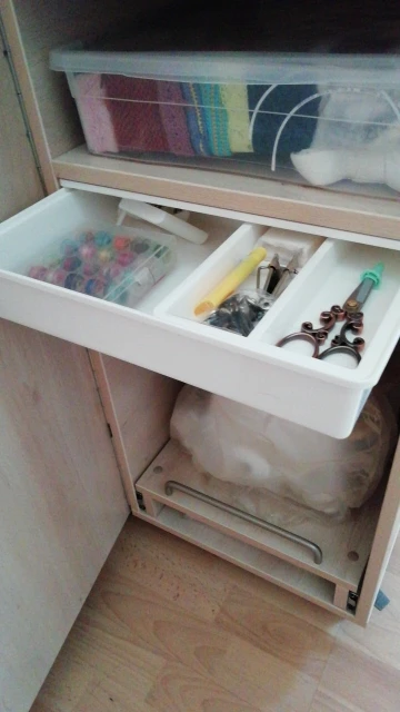 ящик классный, но имеет один недостаток: когда он задвинут полностью, его трудно открыть, т.к. не за что зацепиться: нет ни ручки, ни выступа никакого. Порой приходится его сзади из под низа подталкивать рукой, чтобы открыть. А это очень неудобно