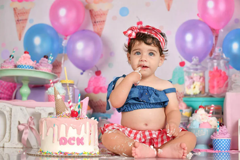 Фон для фотосъемки новорожденных с изображением мороженого воздушных шаров подарков сладкой ваты детский портрет вечерние декоративный реквизит для фотостудии