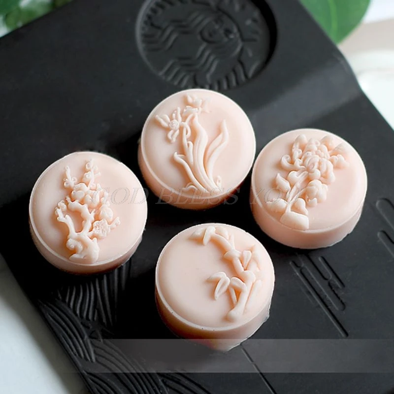 Форма для выпечки "Луна", 50 г, 4 штампа с орхидеями, для самостоятельного изготовления выпечки, хлебобулочные изделия для середины осени, Прямая доставка