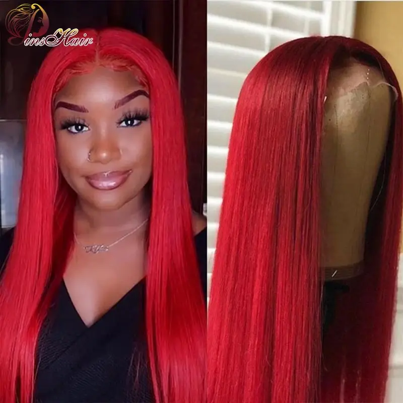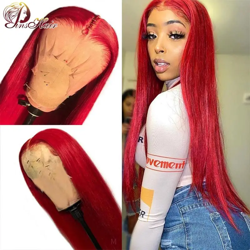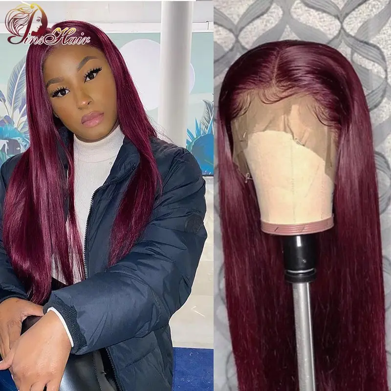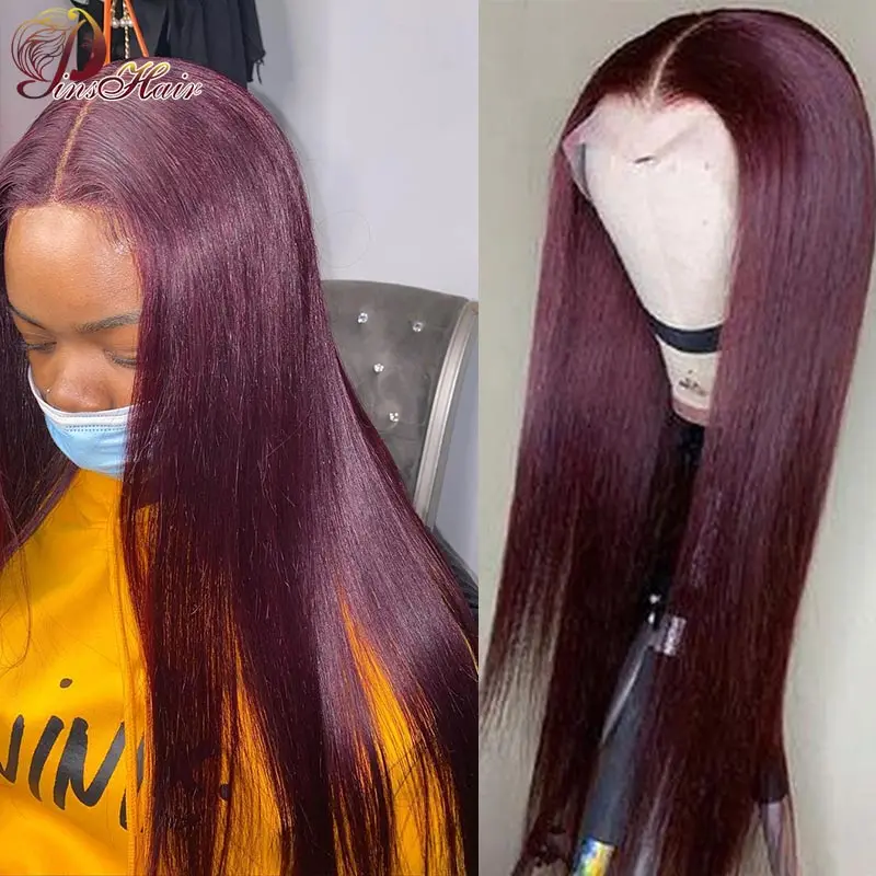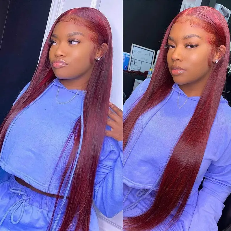 Прозрачные передние парики на шнурке, 150% плотность, красные бордовые 99J, парики на шнурке, бесклеевые бразильские Прямые Hd парики на шнурке