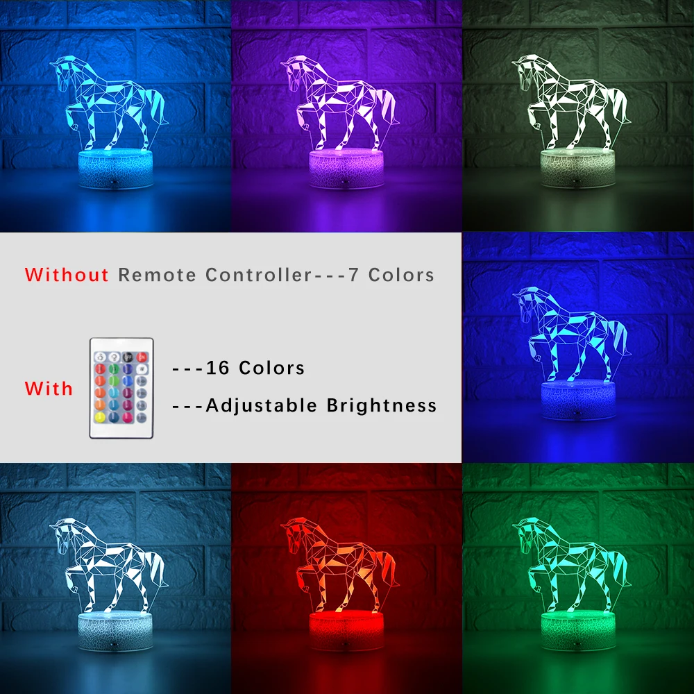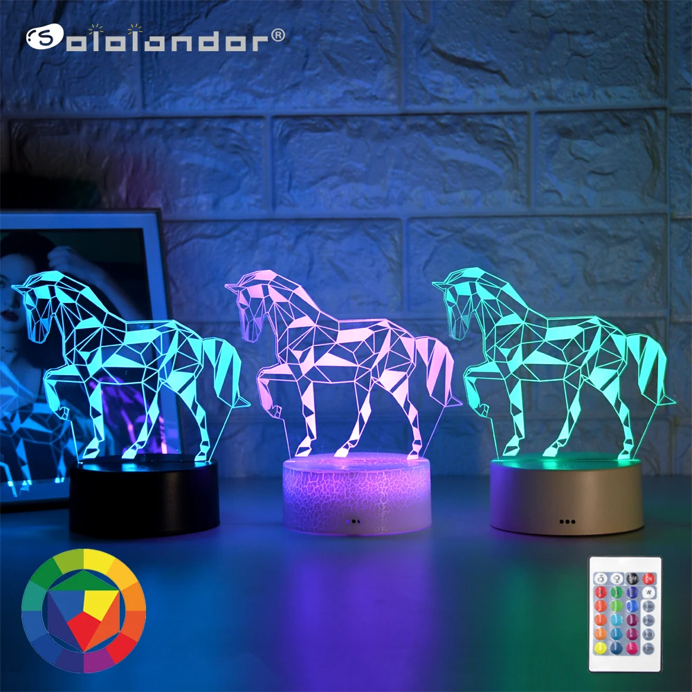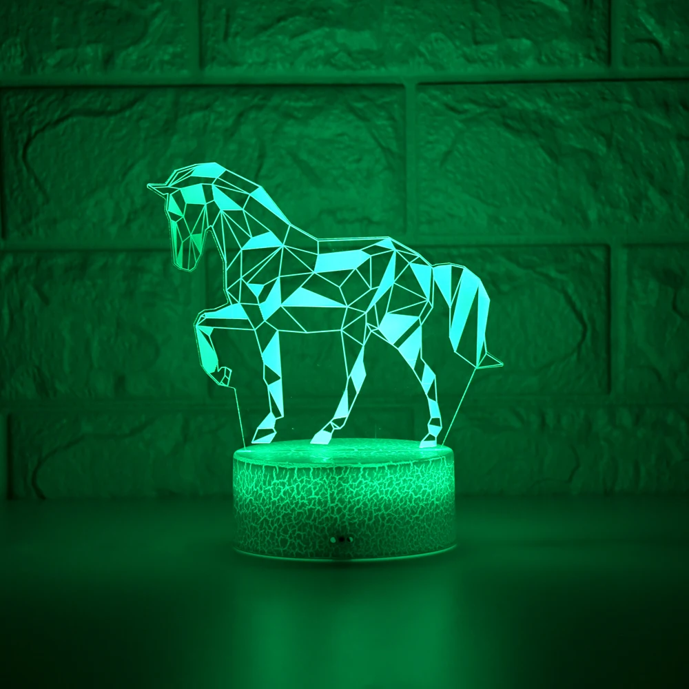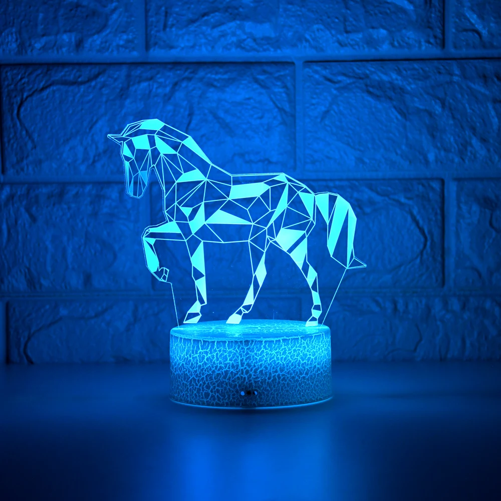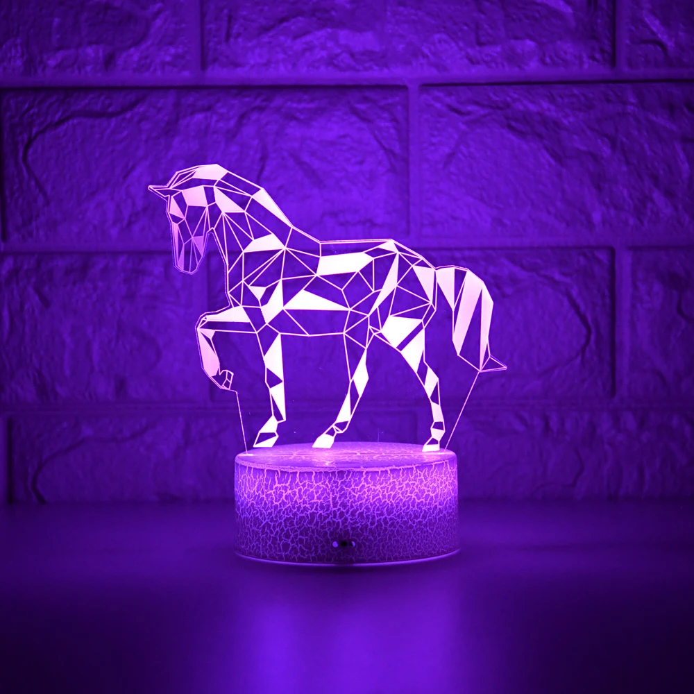 Детский ночник с 3D рисунком лошади, креативная прикроватная лампа для обеденного стола, романтический светильник, детское украшение для дома, подарок для детей