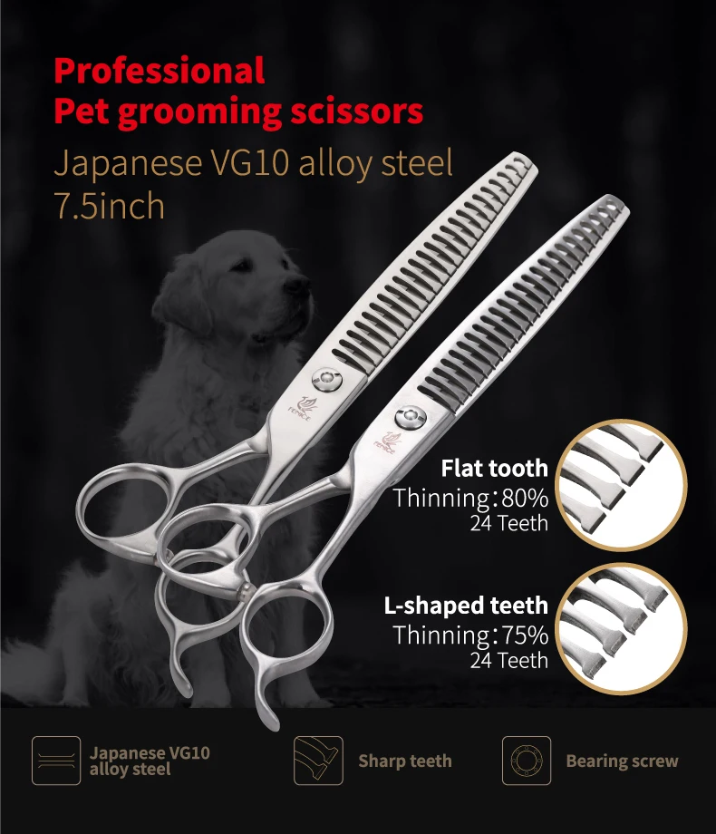 Профессиональные японские стальные ножницы Fenice vg10 7,5 дюйма для груминга домашних животных ножницы для филировки 75% и 80%
