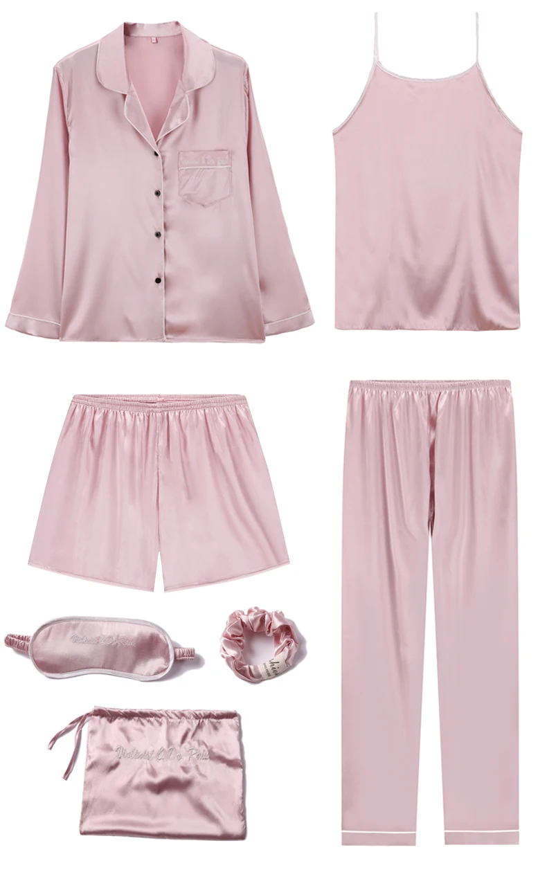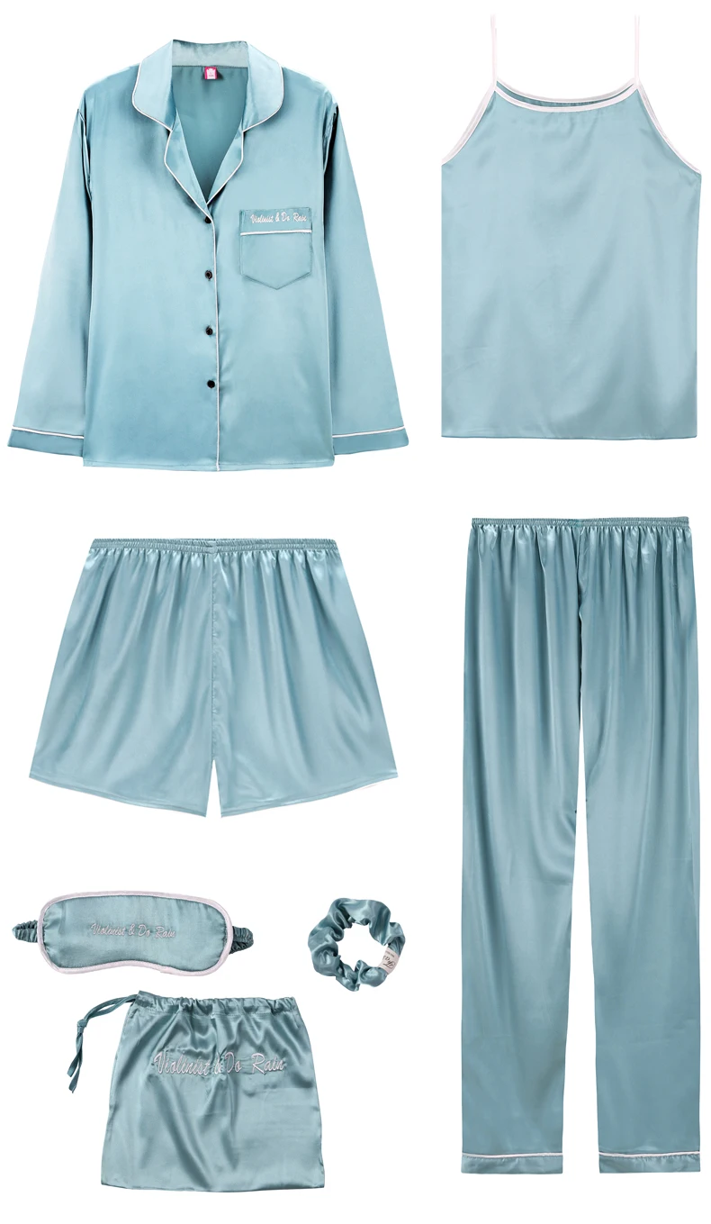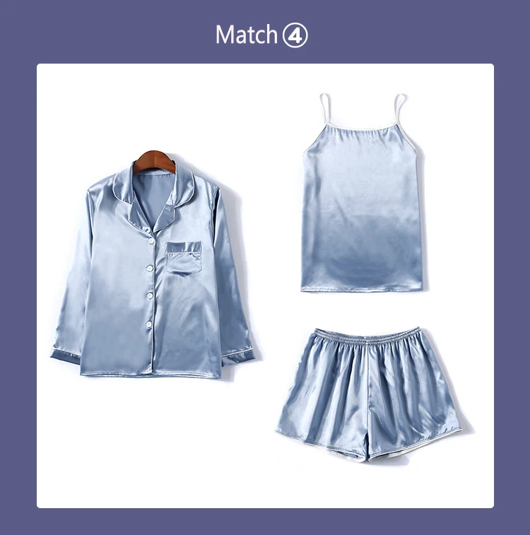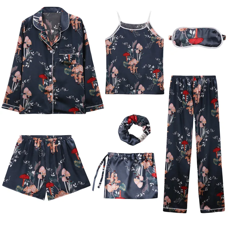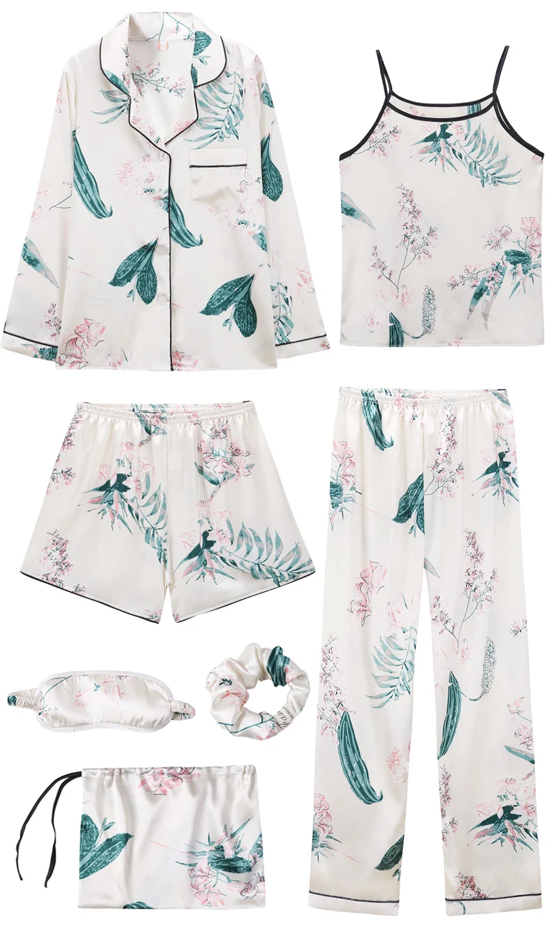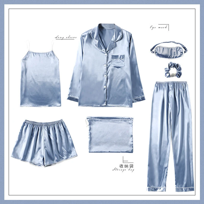 Женская пижама, 7 шт., атласная пижама, сексуальная шелковая Домашн...