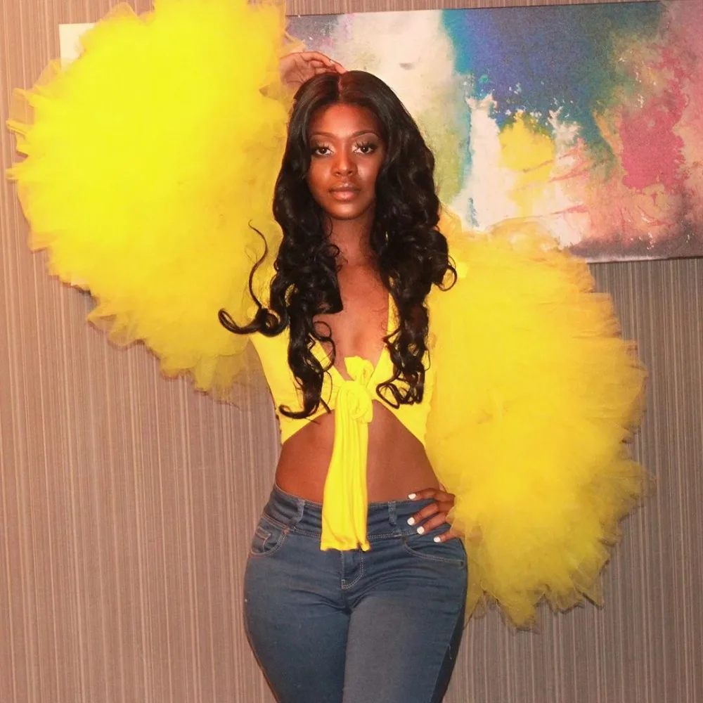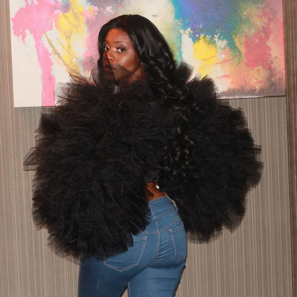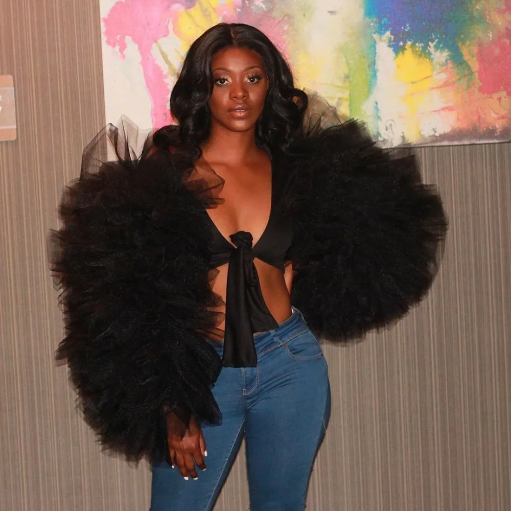 Женский короткий топ из тюля, с длинным рукавом, на заказ