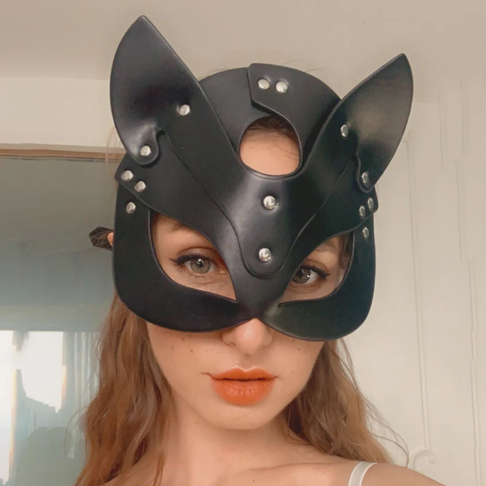 Кожаная маска B.CYQZ ручной работы, маска кошки для вечевечерние в стиле панк, готический кожаный ремешок, сексуальная Регулируемая маскарадная Сексуальная для женщин