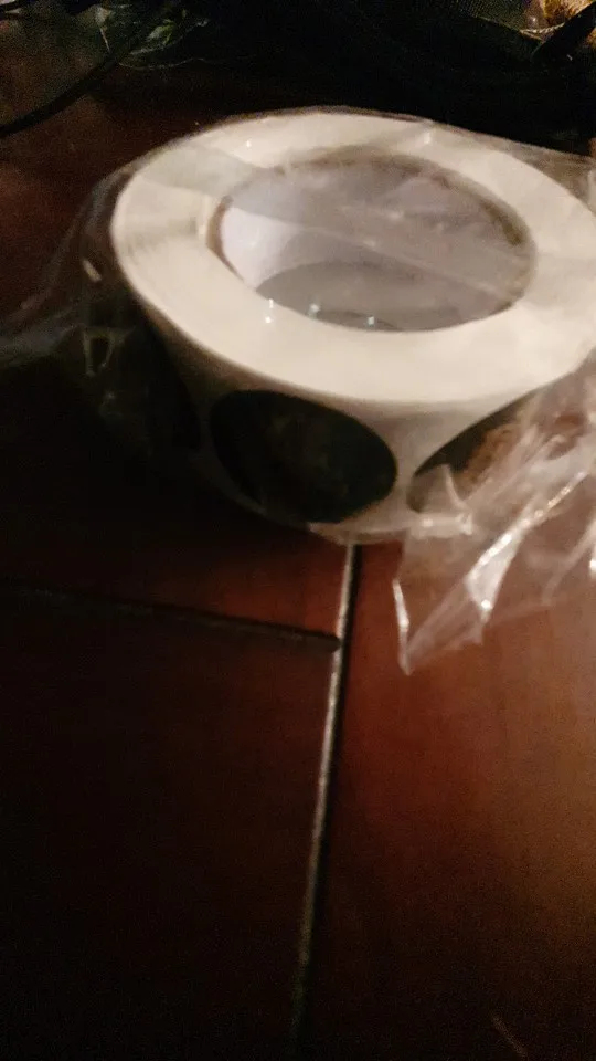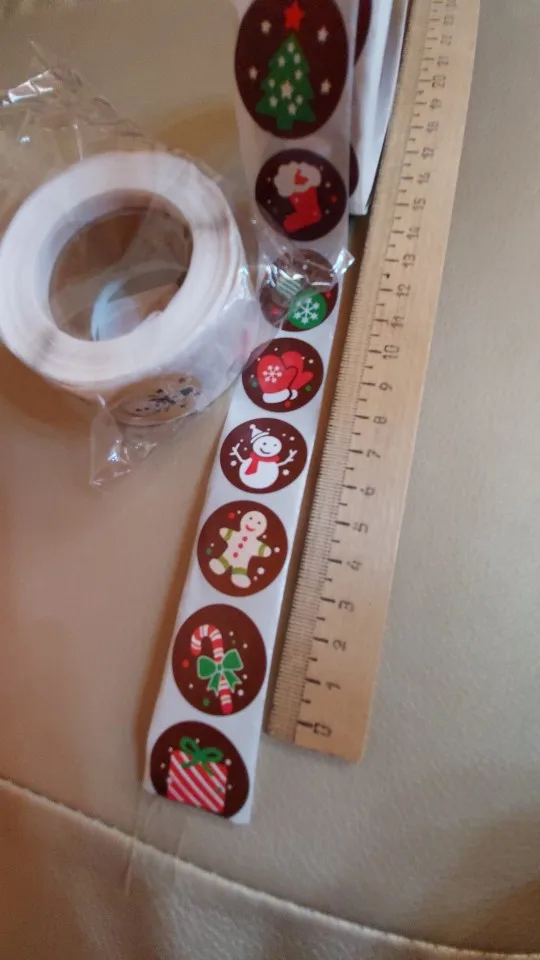 Наклейки соответствуют описанию. Диаметр 2,5 см. Есть резкий запах краски. Есть ли там 500 штук, не знаю, пересчитывать не стала.