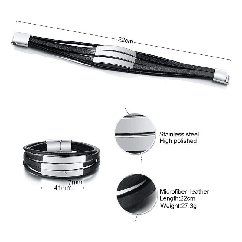 Мужской Многослойный кожаный браслет Vnox с блестящей биркой из нержавеющей стали