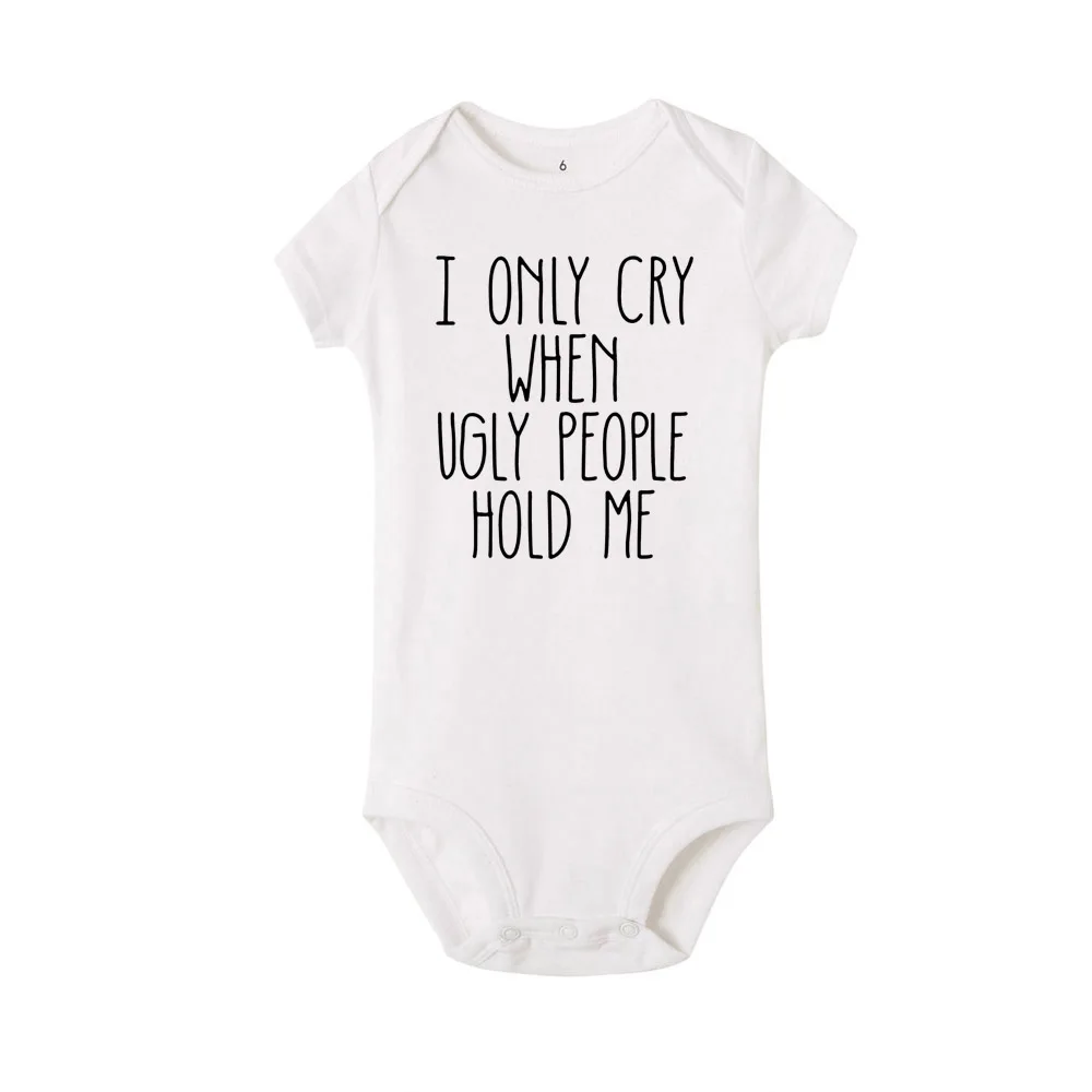 Я плачу только тогда, когда уродливые люди держат меня забавным принтом для маленьких мальчиков и девочек, унисекс, боди для малышей, Ropa, повседневный комбинезон, одежда