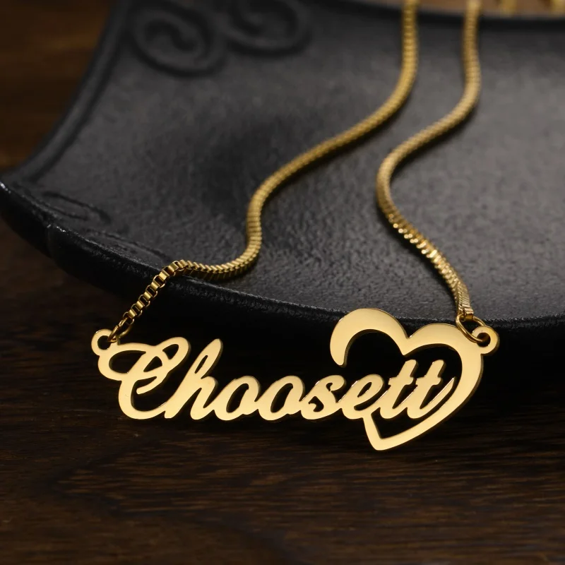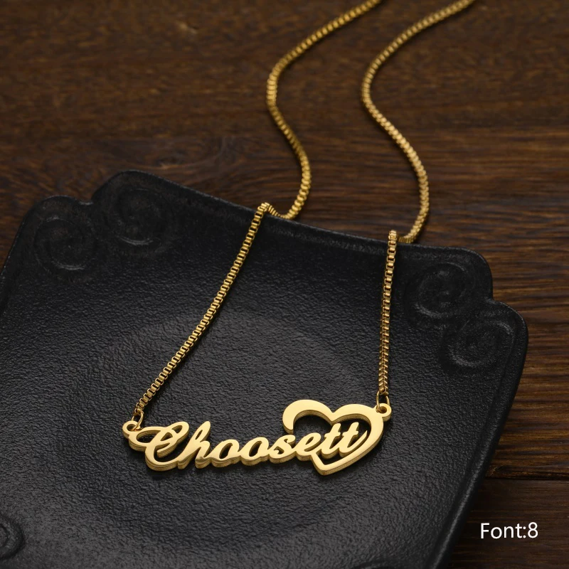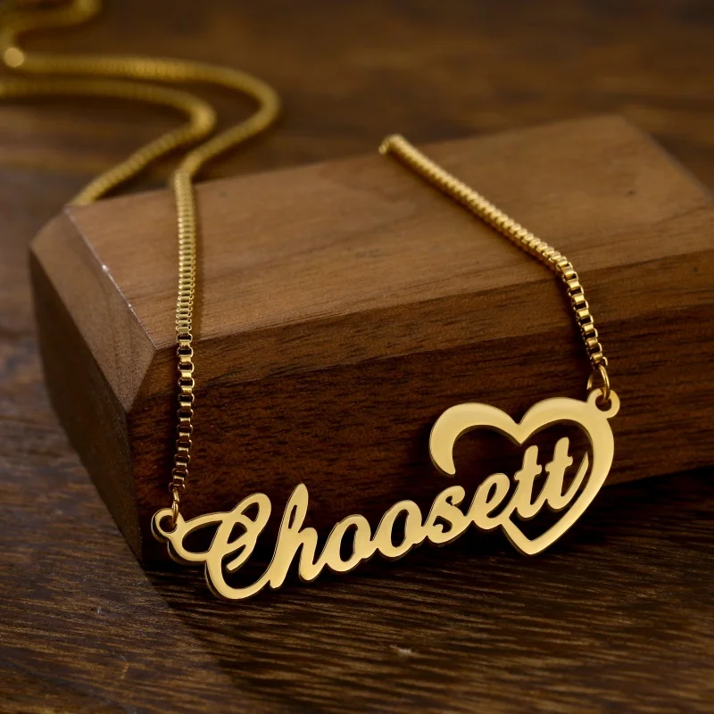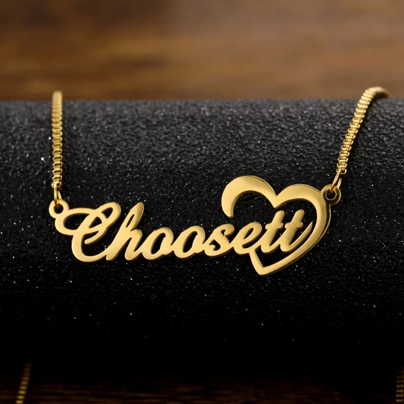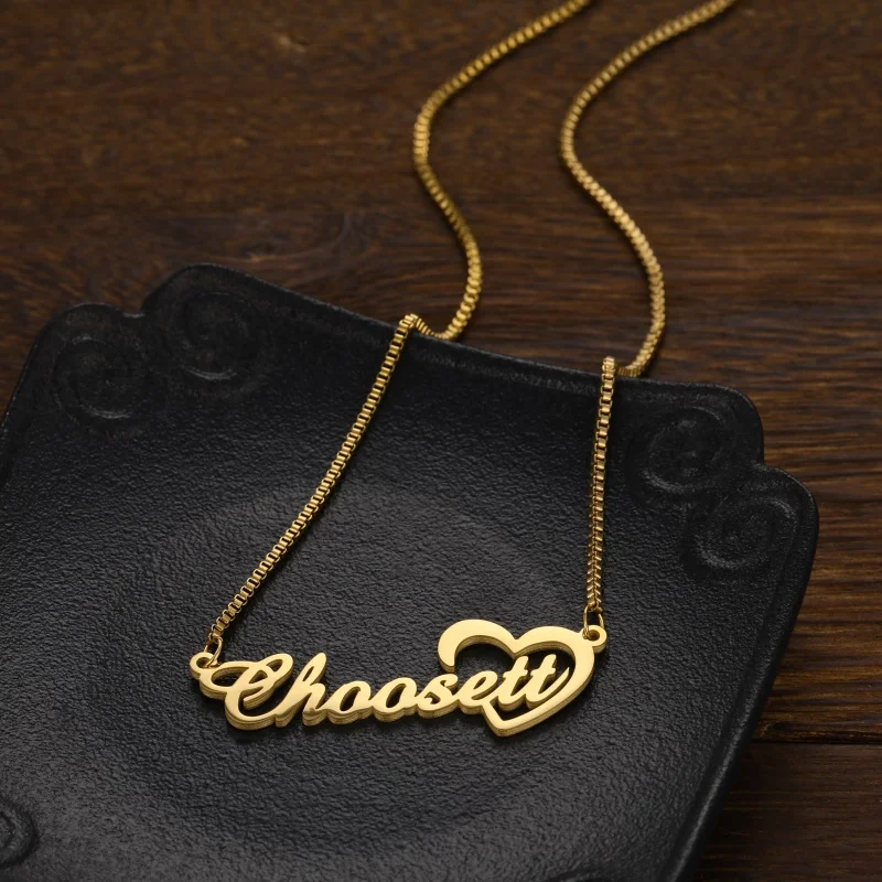 Ожерелье с именем на заказ для женщин, цепочка из нержавеющей стали с золотой коробкой, персонализированная табличка с подвеской в форме сердца, ожерелья, ювелирные изделия
