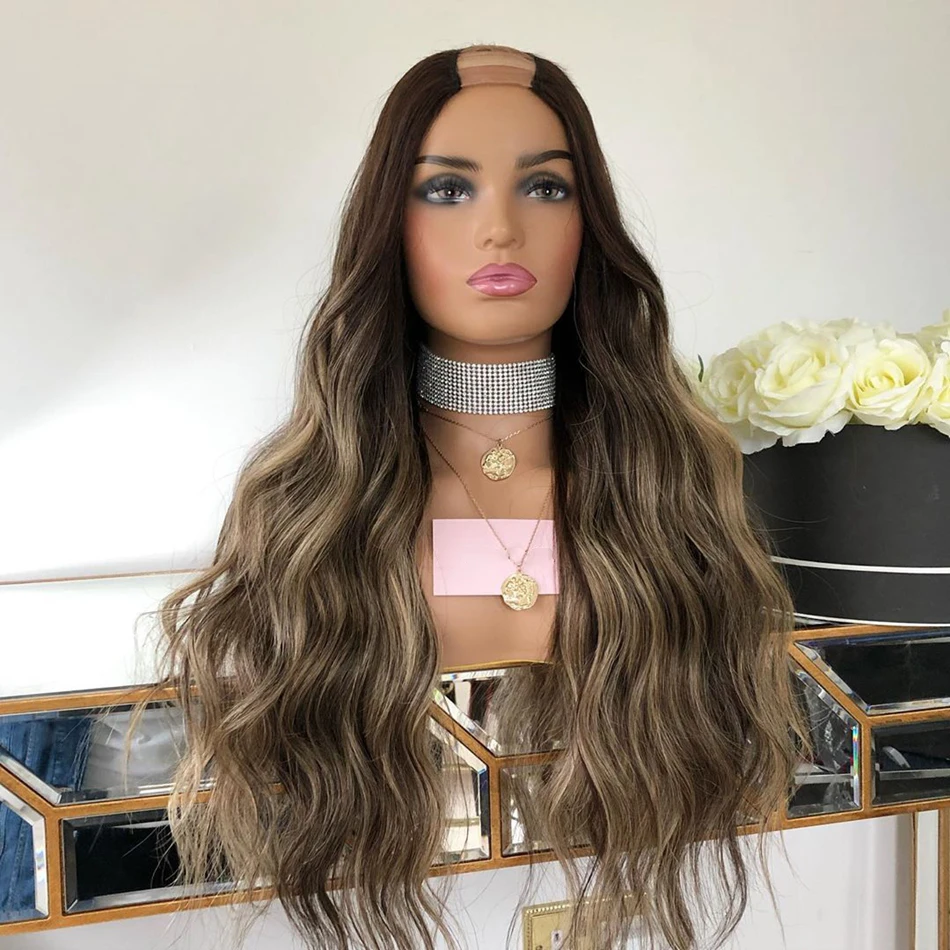 U-образные парики для женщин, волнистые волосы 1x4, 30 дюймов, плотность 200