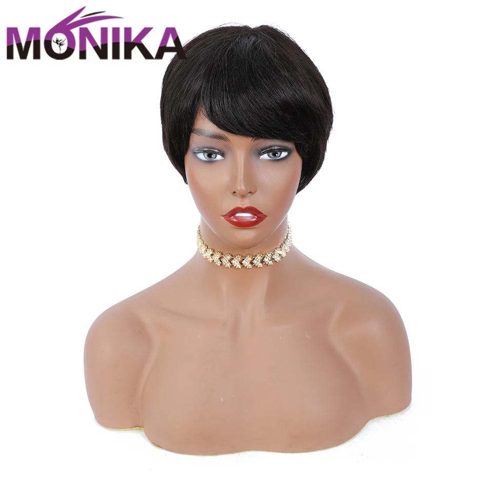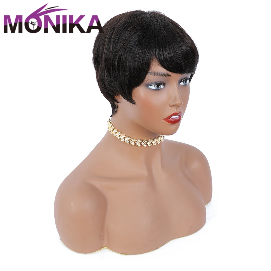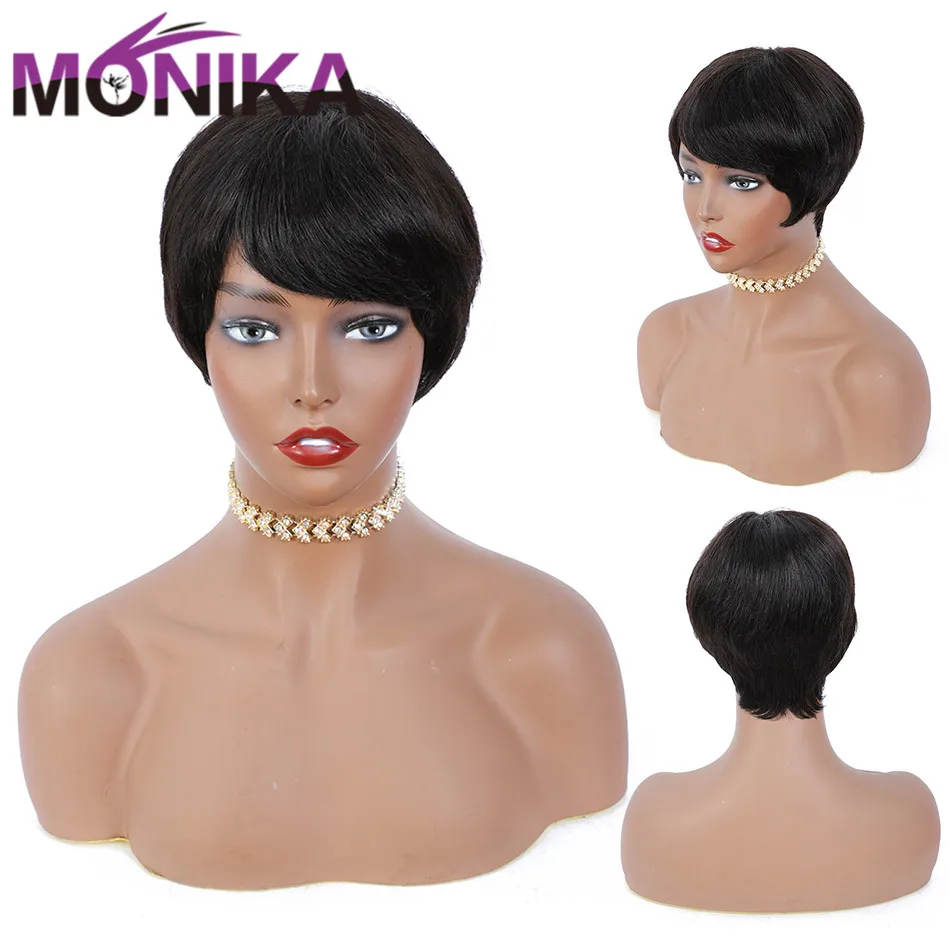 Monika, Бразильские короткие прямые человеческие волосы, парики, натуральные черные волосы Remy, бесклеевые, полные парики для женщин, бесплатная доставка