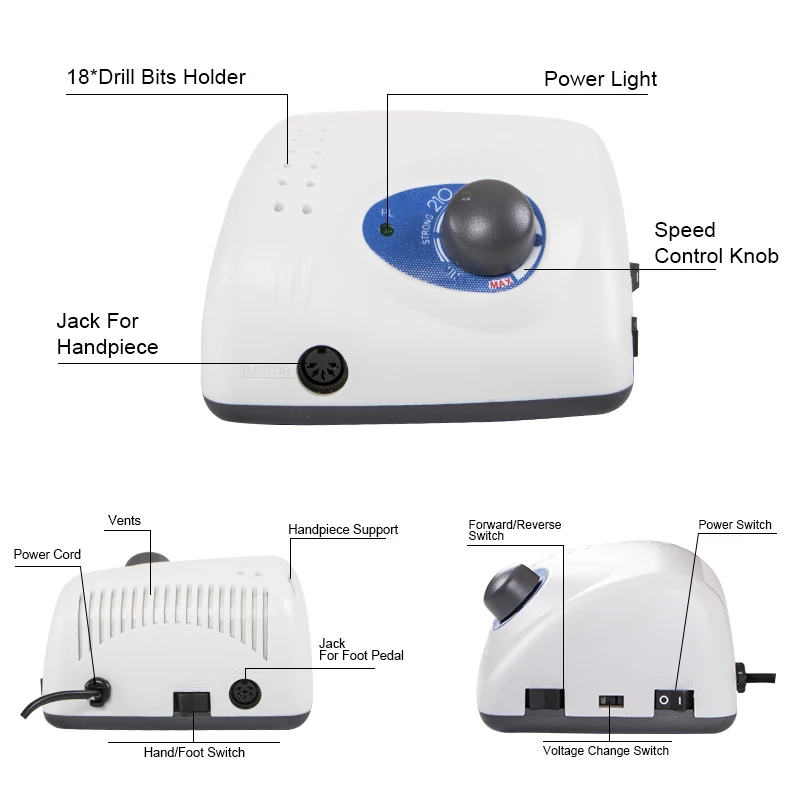 Электродрель и аксессуары для маникюра, мощный 210 65 Вт с микро-мотором, 35000 обмин, универсальный инструмент для полировки ногтей