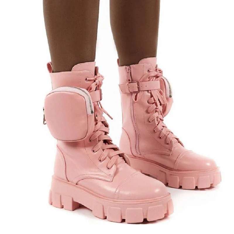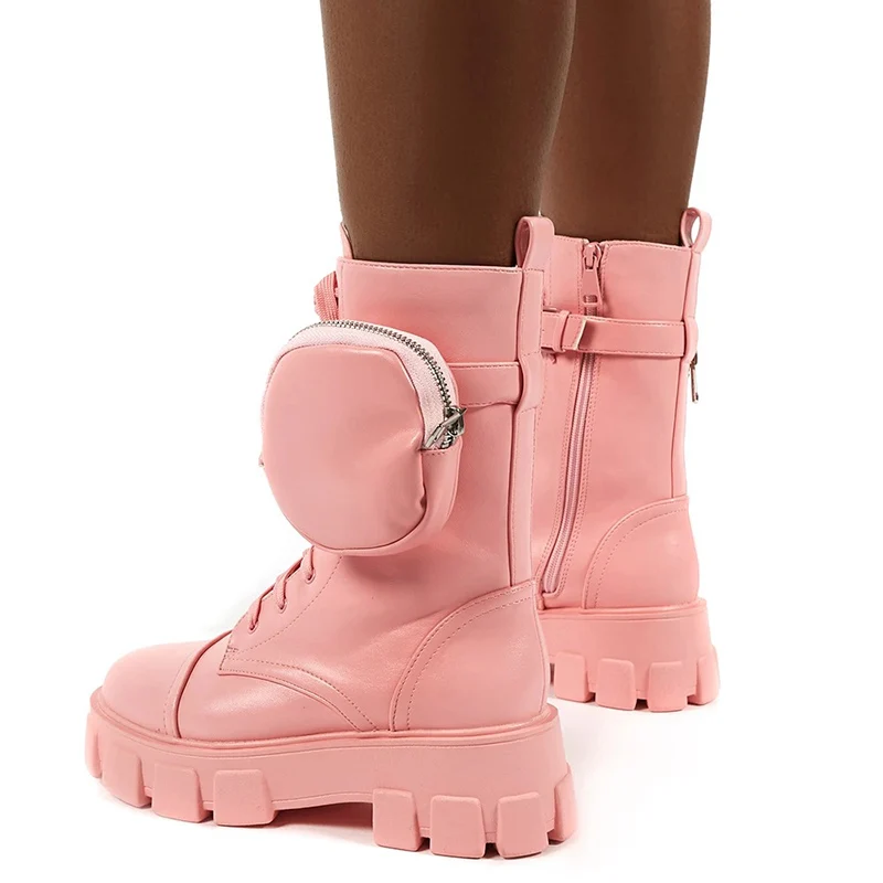 Rimocyмодные ботинки на массивной платформе с пряжкой и карманами; Женские розовые ботильоны на шнуровке; Женская мотоциклетная обувь в стиле панк; Большие размеры 43