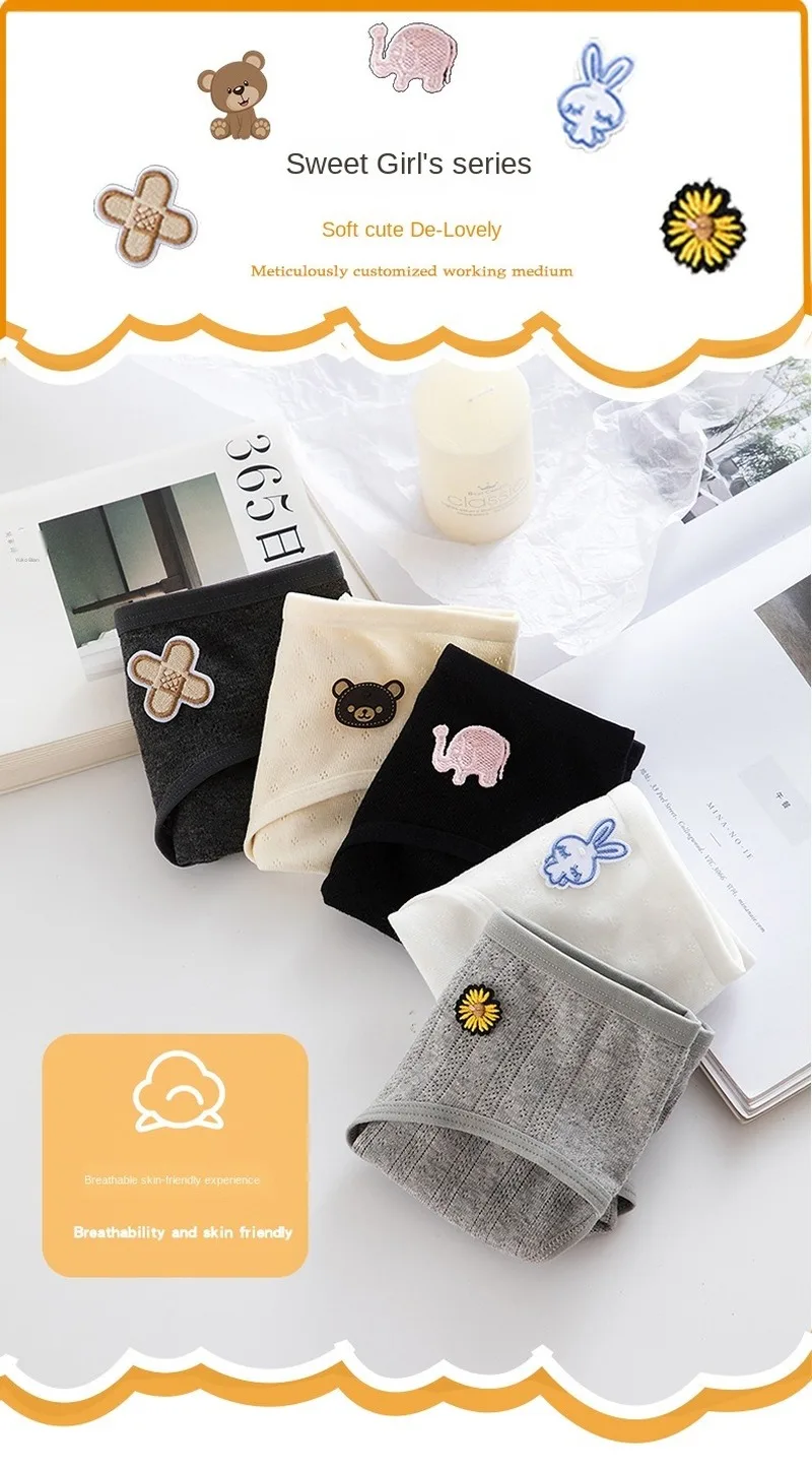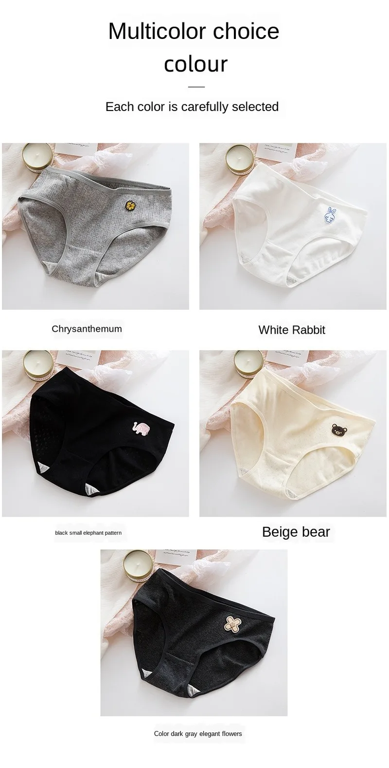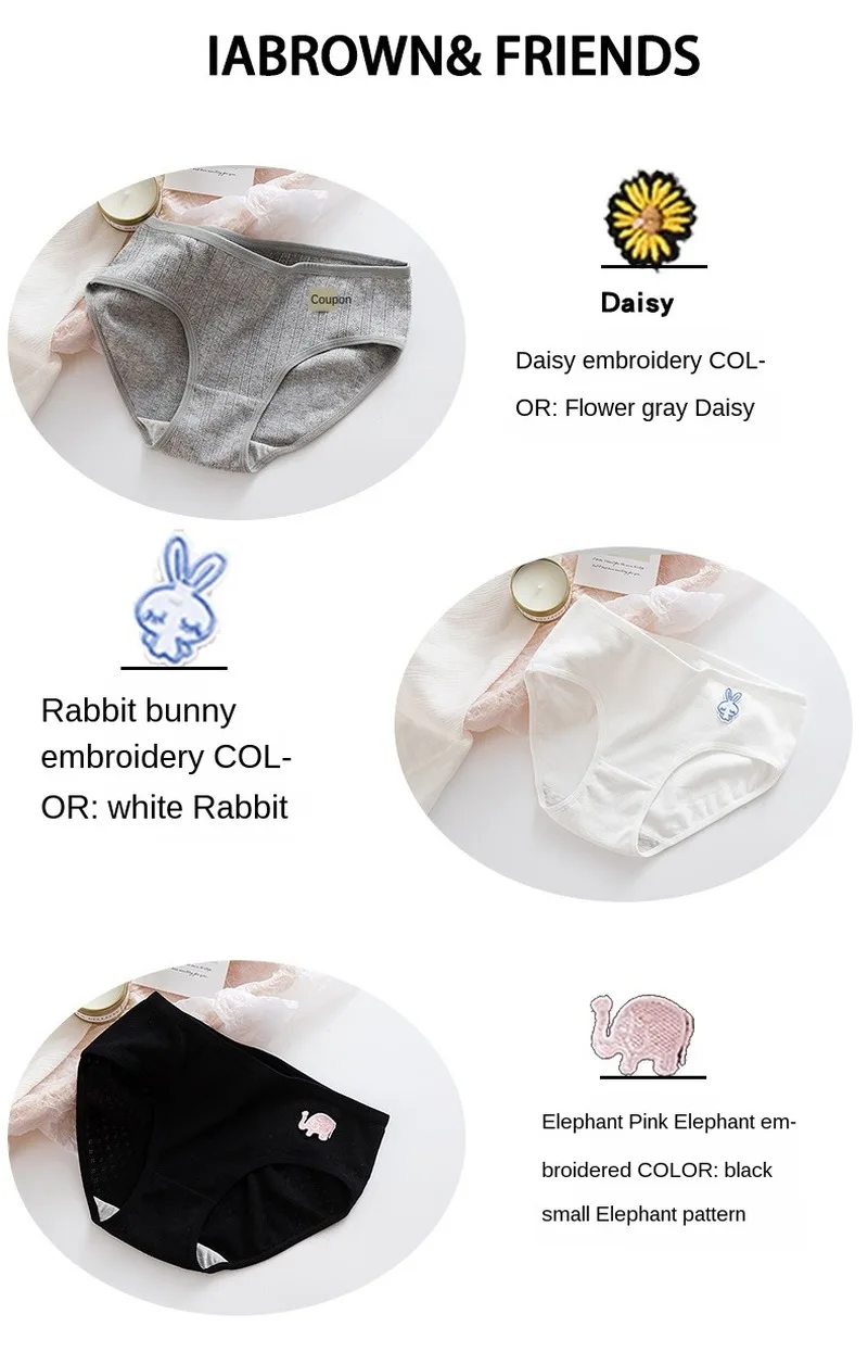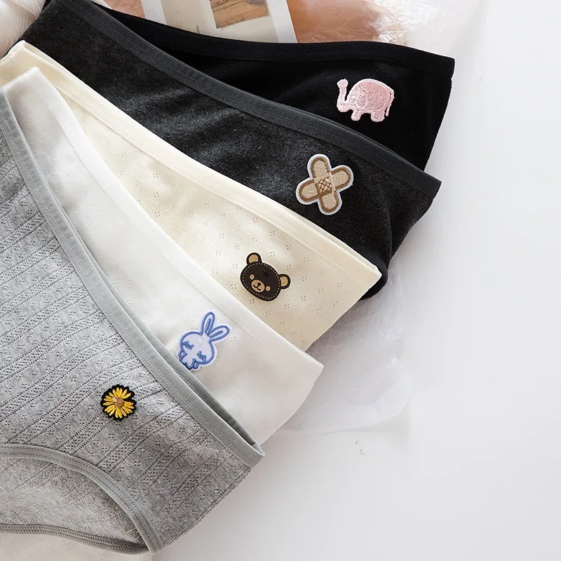 Трусы женские хлопковые сетчатые, со средней посадкой, с мультяшной вышивкой