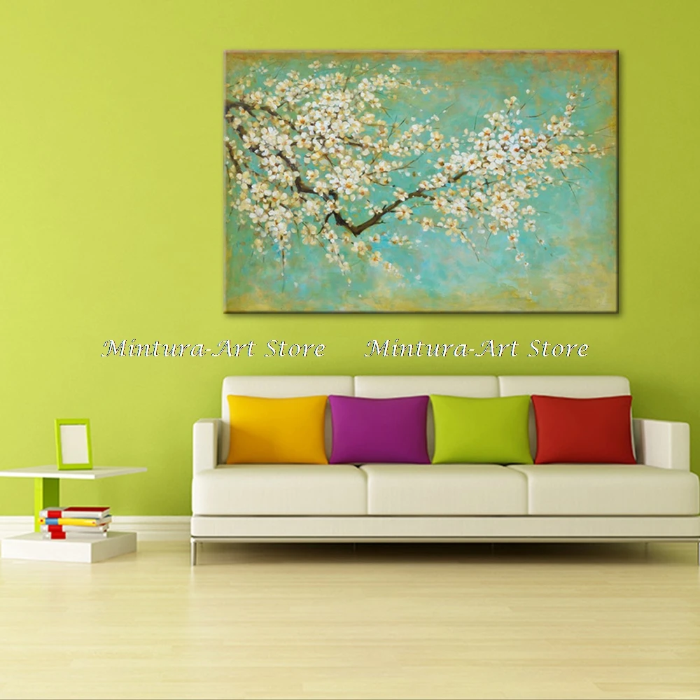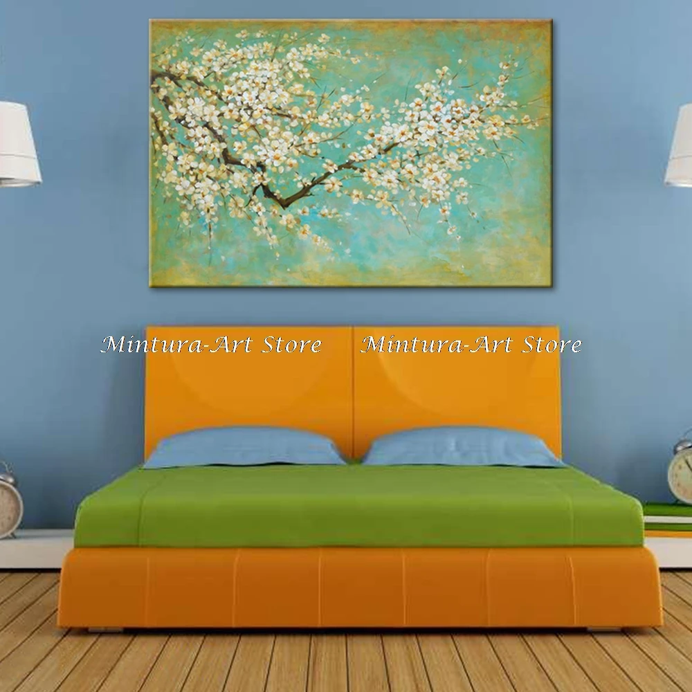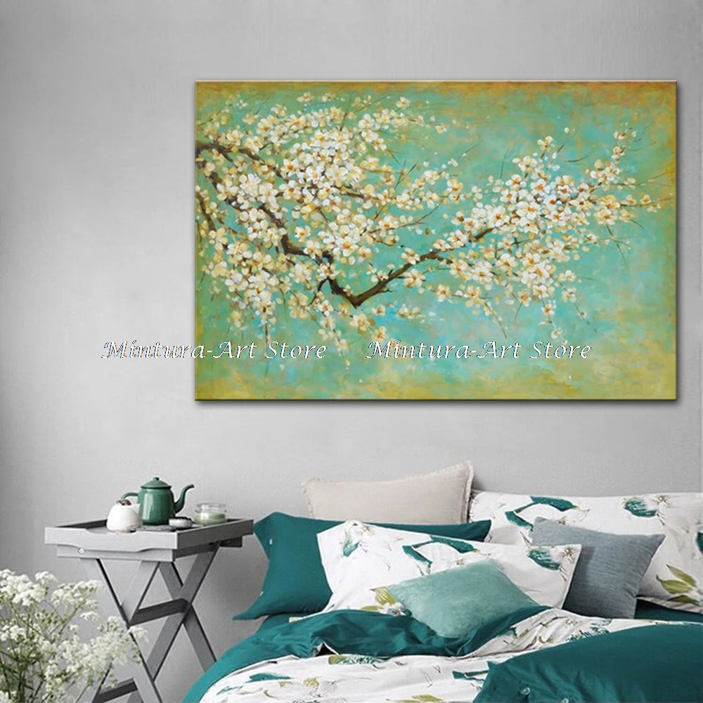 Современная абстрактная картина, ручная роспись, цветущие миндальные цветы, картина маслом на холсте, настенная живопись для спальни, гостиной, домашний декор