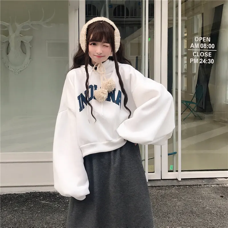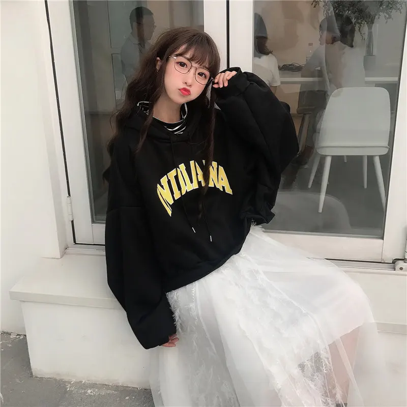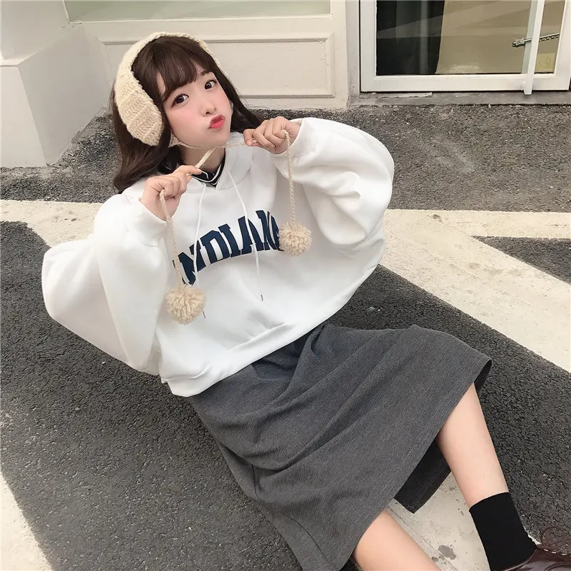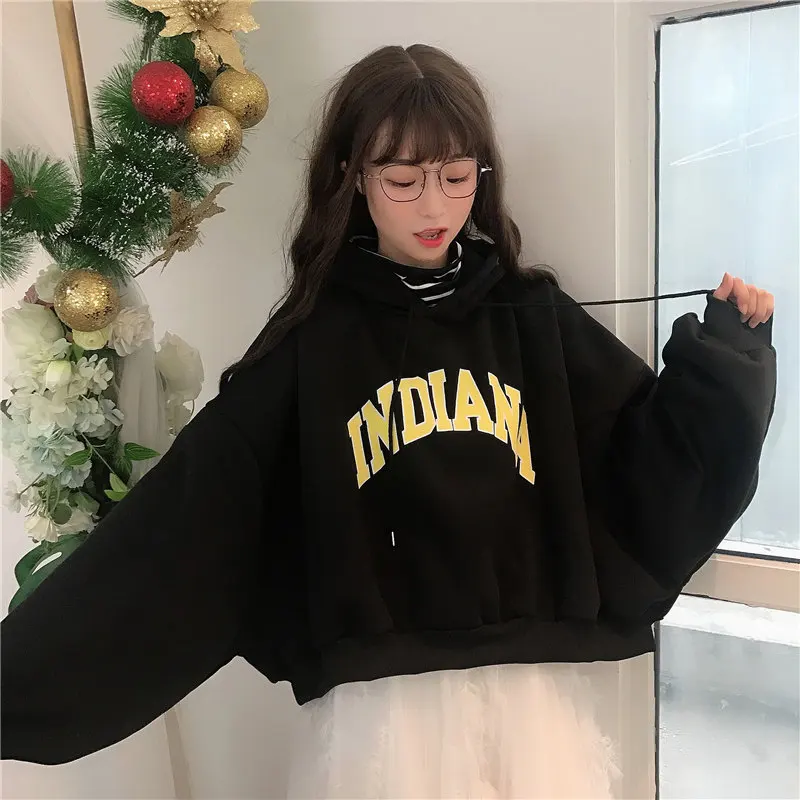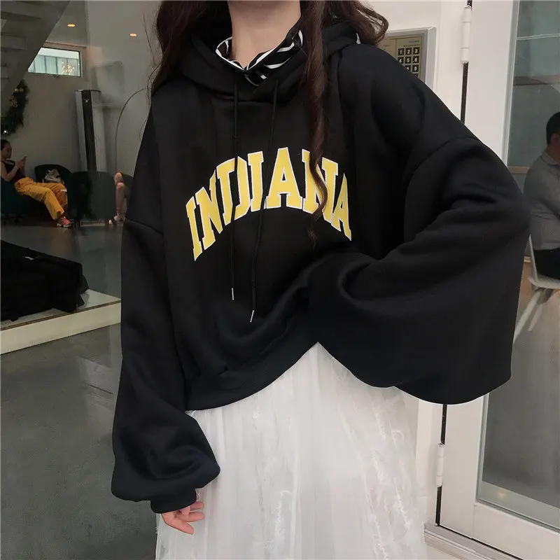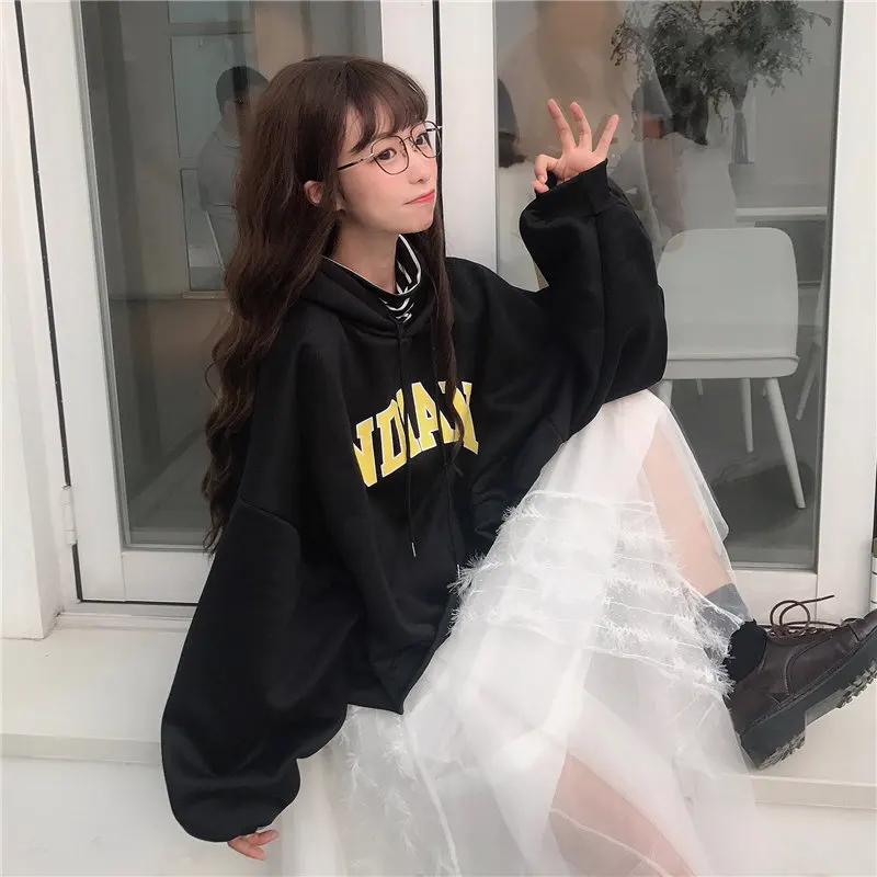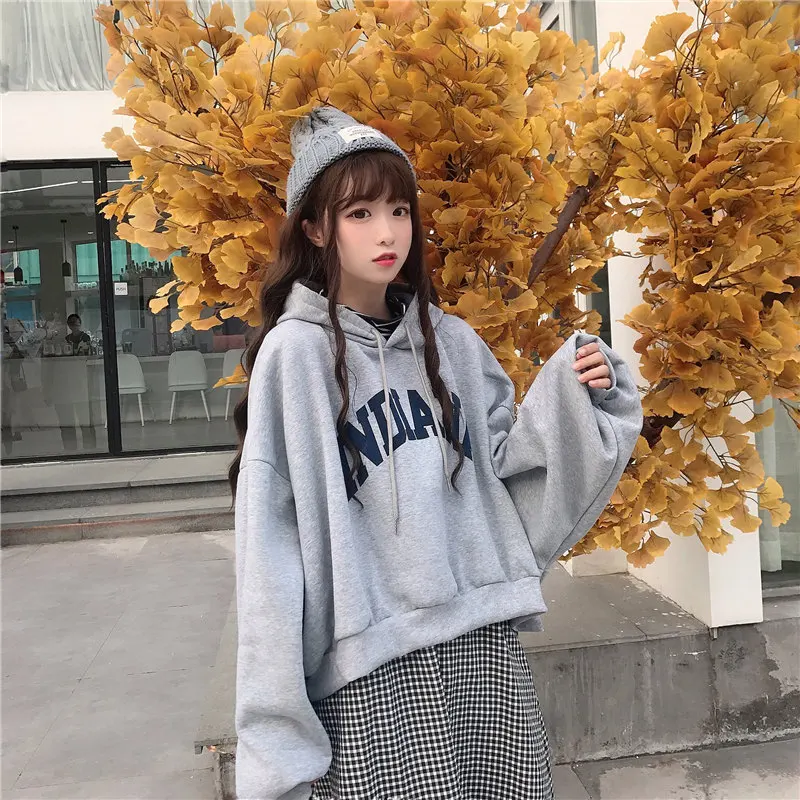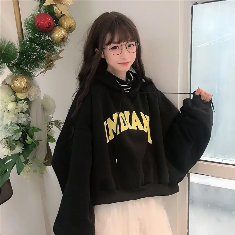 Толстовка женская с капюшоном, толстая Свободная верхняя одежда из бархата, двойка-обманка, худи с надписью, универсальная простая трендовая одежда для отдыха