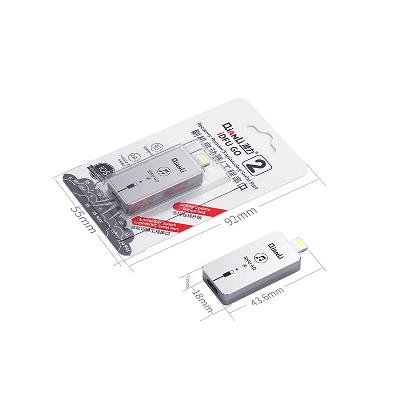 Быстрый запуск вспышки Никаких утомительных шагов, непосредственно введите Режим восстановления, поддержка всех устройств IOS с интерфейсом lightning 1: 2,8 секунды для входа в режим DFU без нажатия клавиш 2: быстро адаптируется к новой системе IOS. Новые модели. Обновление не требуется 3: щетка непосредственно после входа в DFU. Нет необходимости менять кабели Plug and play DFU Автоматическое обновление Не меняйте щетку кабеля Qianli iDFU поддерживает систему выше ios10.0, но не поддерживает систему ниже ios10.0 Инструкции по продукции: 1. Полностью Выключите iPhone 2. Подключите usb-кабель Apple к модулю iDFU GO 3. Подключите usb-кабель Apple к компьютеру 4. Вставьте модуль IDFU GO в iphone телефон 5. Модели iphone 5s / 6 / 6p / 6s6SP и ниже. Телефон должен нажать кнопку питания и подключиться одновременно 6. После ожидания в течение 3-10 секунд iPhone автоматически войдет в режим восстановления Если он все еще не работает, рекомендуется изменить кабель передачи данных, кабель передачи данных является лучшим оригинальным