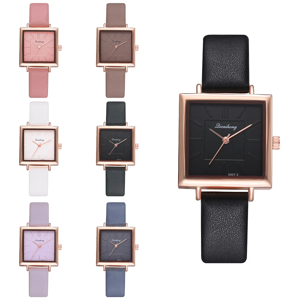 Женские наручные часы с квадратным циферблатом, розовое золото