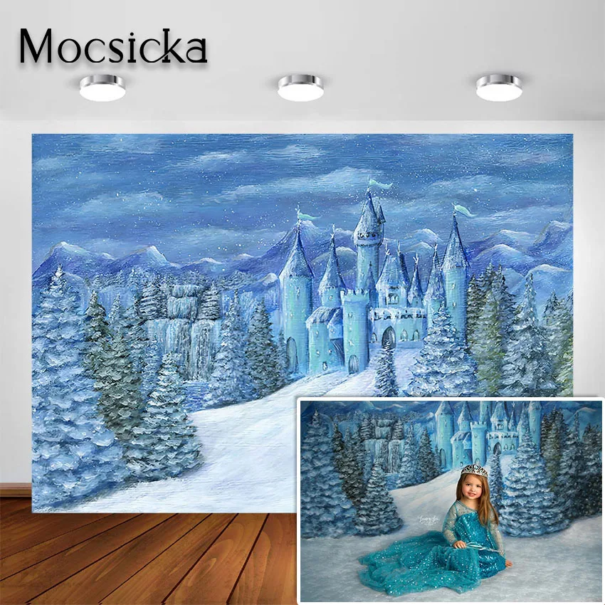 Mocsicka ледяной замок принцесса фон Зимний снег Страна Чудес Новорожденные девочки портрет фотография фон для фотостудии