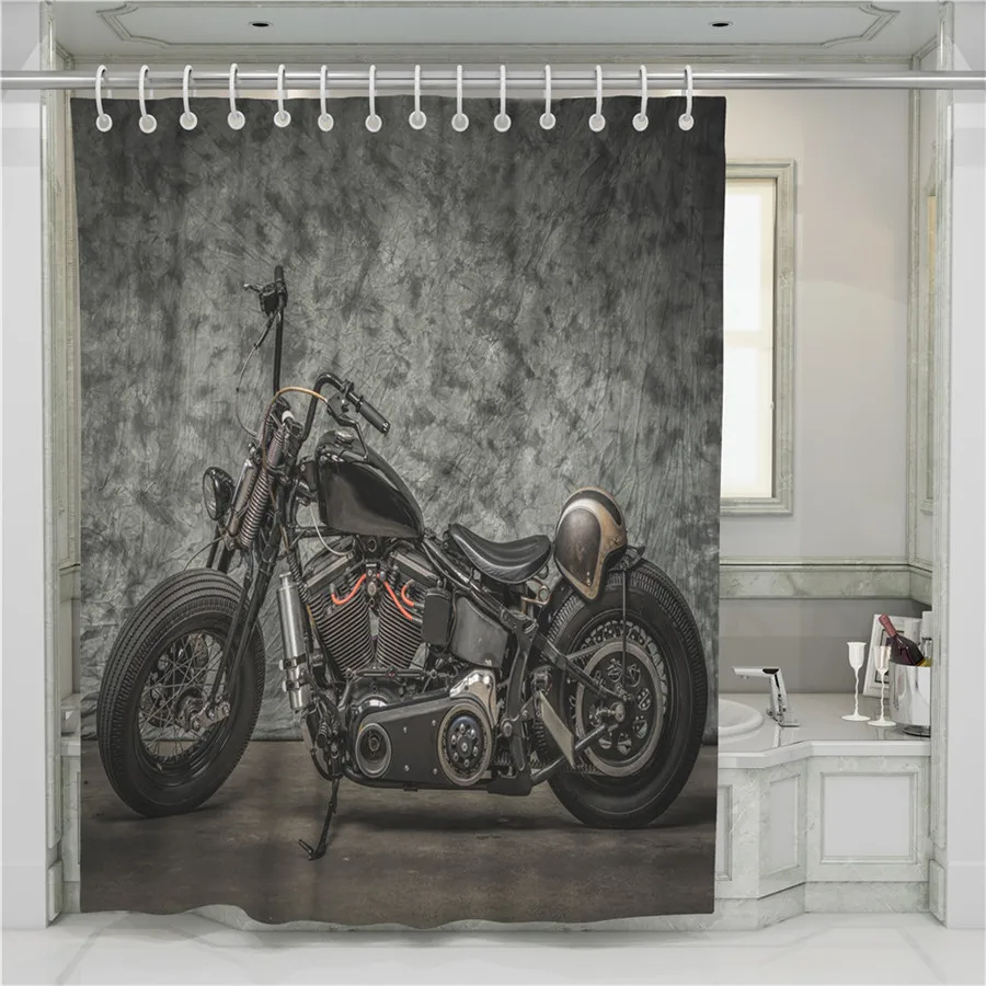 Мотоциклетная занавеска для душа, водонепроницаемая, экологически чистая ткань из полиэстера, 3D печать, шторка s для ванной, душа с крючком