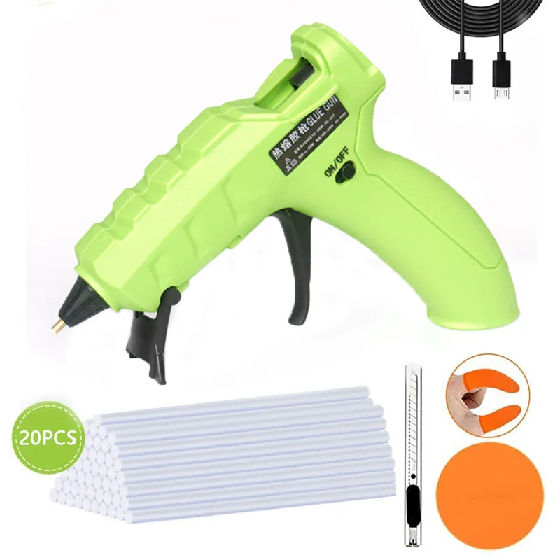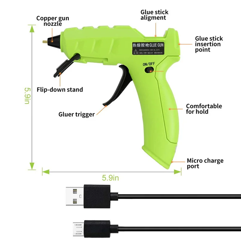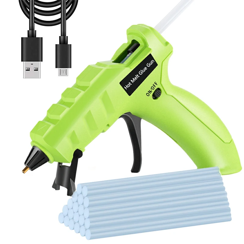 【Безопасный и эффективный клеевой пистолет 】: с высокотехнологичной электронной технологией нагрева PTC, внутри поместите предохранитель, он нагревается очень быстро и автоматически контролируется температурой. Перезаряжаемый дизайн, USB электрический интерфейс, удобный и быстрый, который удовлетворит ваши требования.