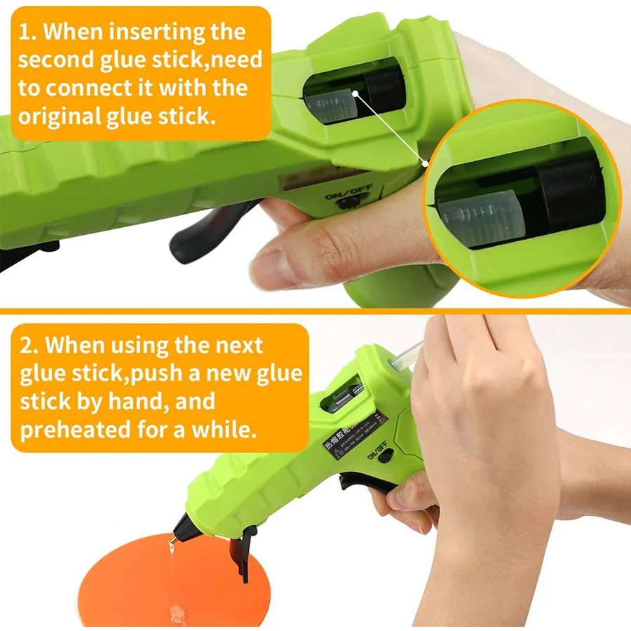 【Беспроводной для использования 】: простой в использовании, просто вставьте клей-палку, включите переключатель, всего 2-3 минуты, чтобы согреться, быстро Готовьтесь к использованию, а затем нажмите на спусковой механизм. После полной зарядки может использоваться в течение 80-90 минут. Очень удобно, безопасно и легко носить с собой.