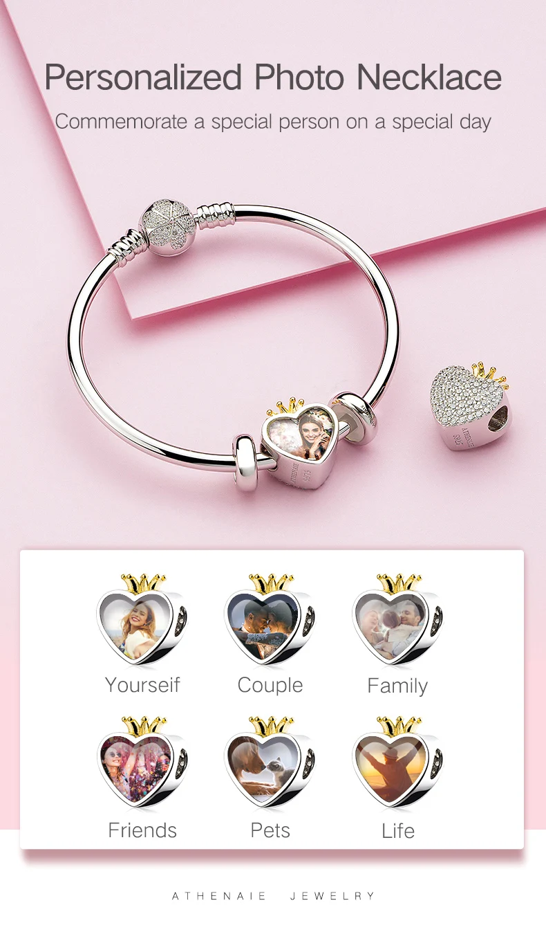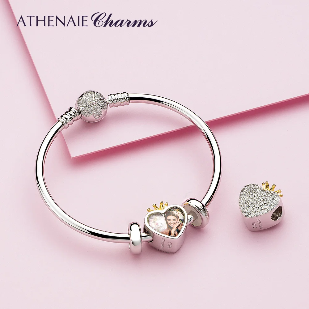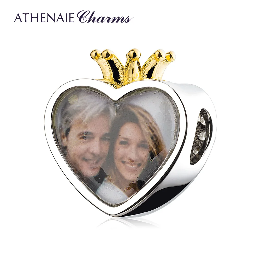 Индивидуальные фотоамулеты ATHENAIE, 925 пробы, серебряные персонализированные изображения домашних животных, любовник, сердце, корона, амулеты для браслета