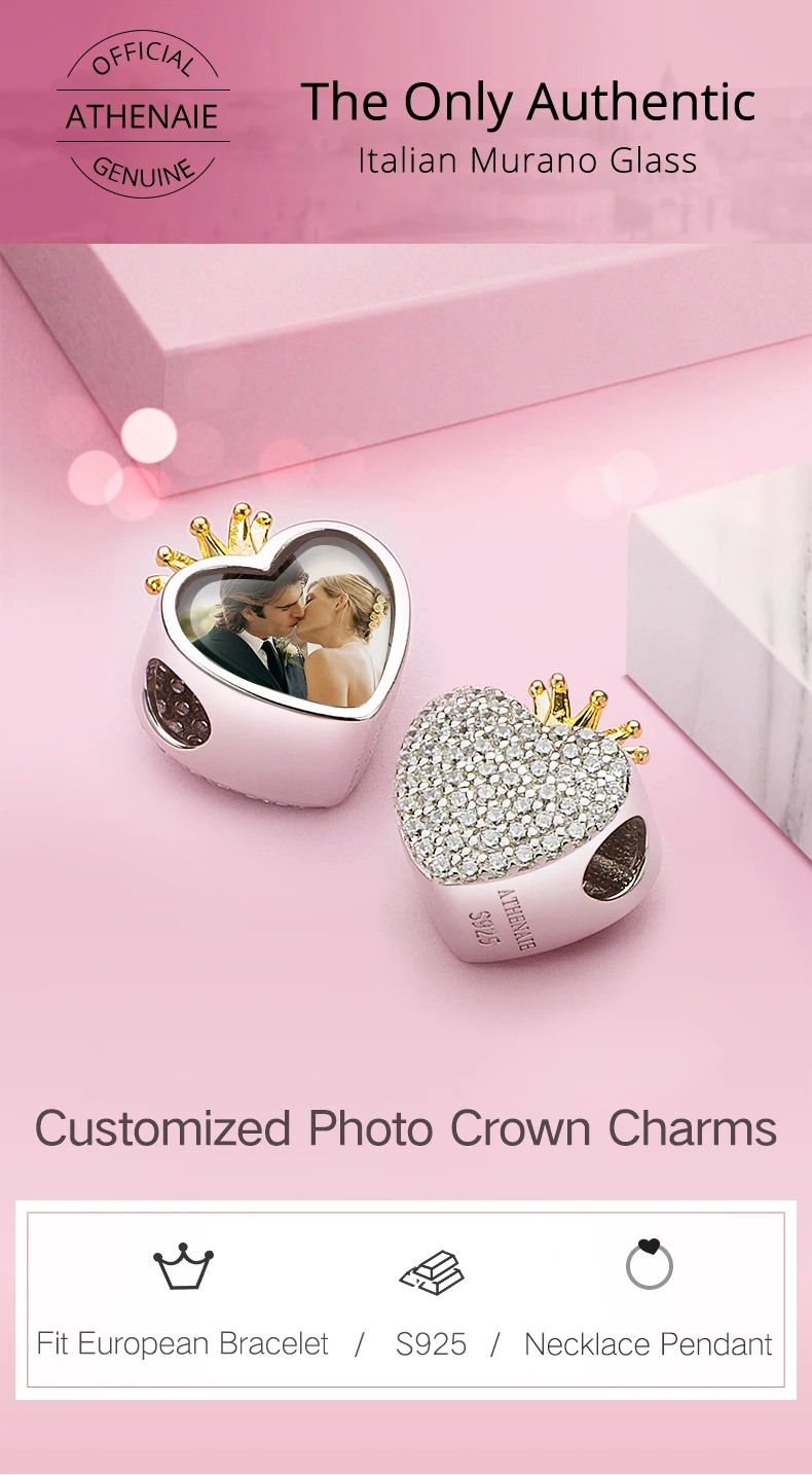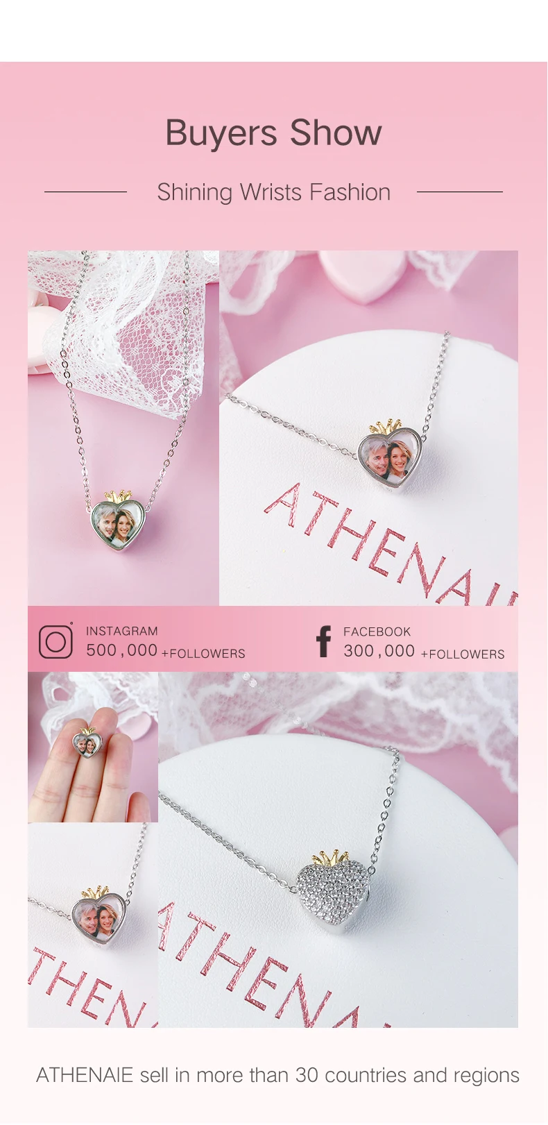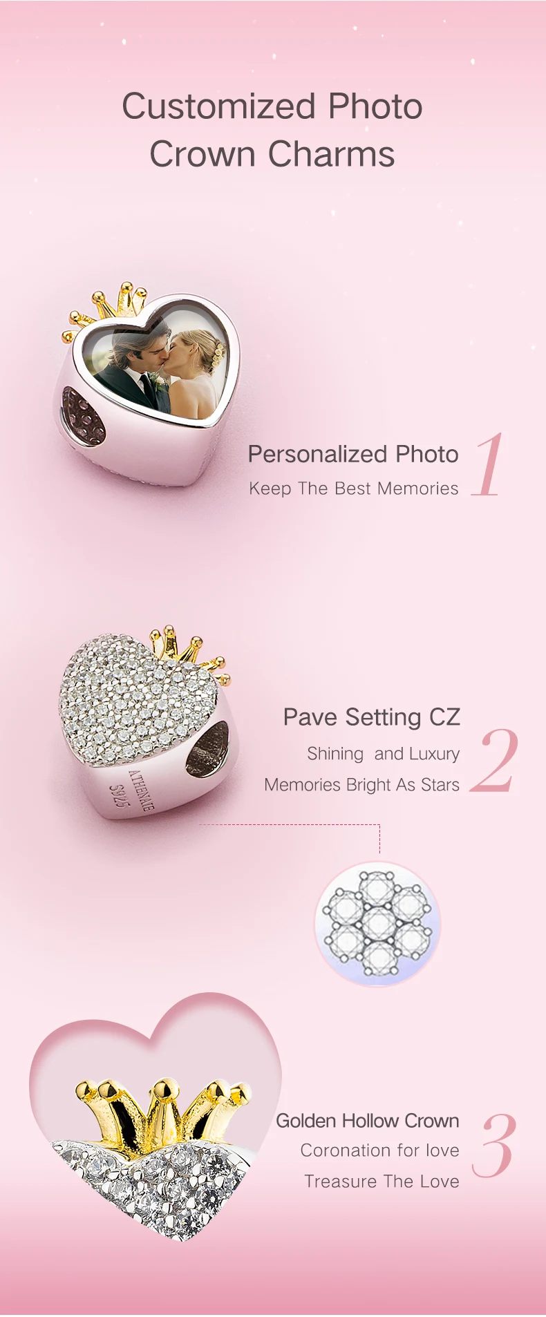 Индивидуальные фотоамулеты ATHENAIE, 925 пробы, серебряные персонализированные изображения домашних животных, любовник, сердце, корона, амулеты для браслета