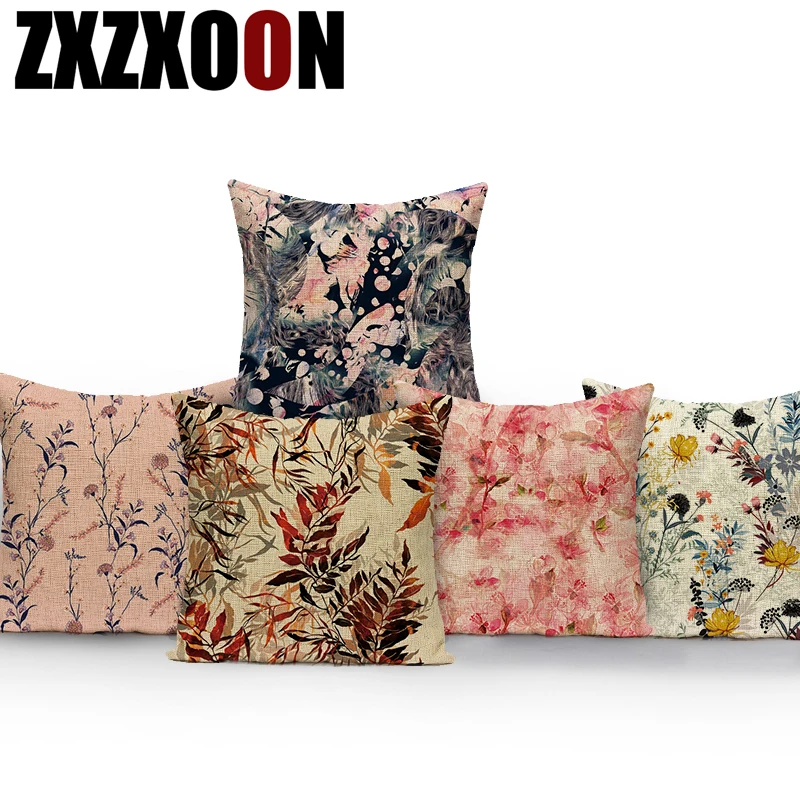 Декоративный чехол для диванной подушки из полиэстера, чехол для подушки с цветами и деревьями, чехол для дивана, дома