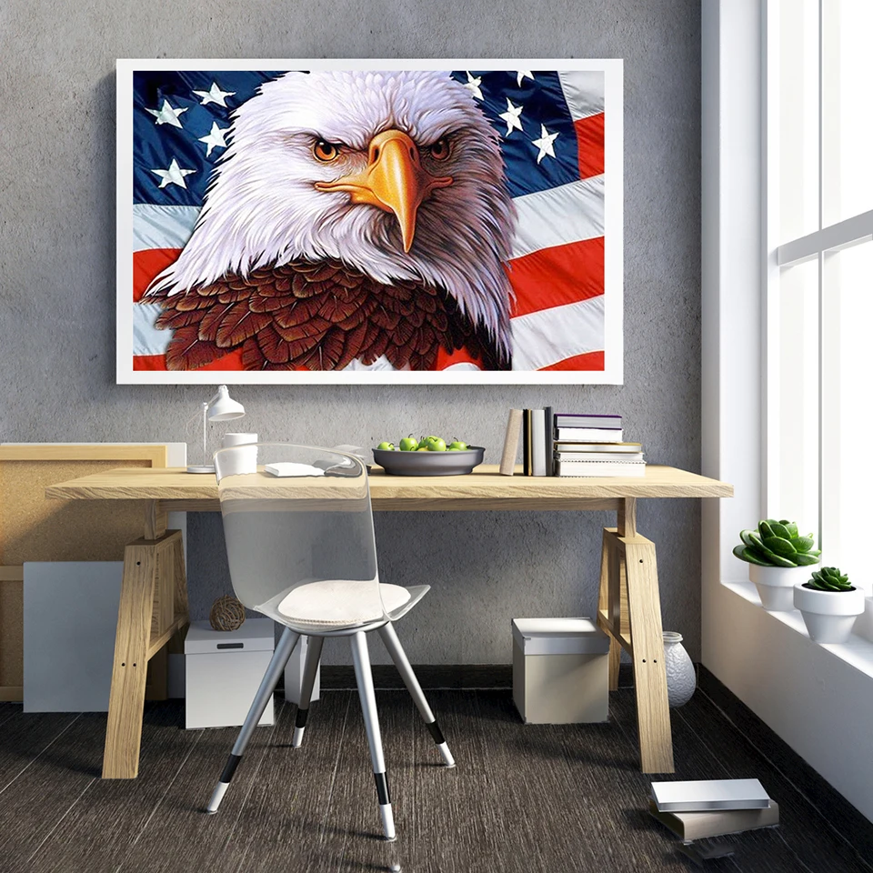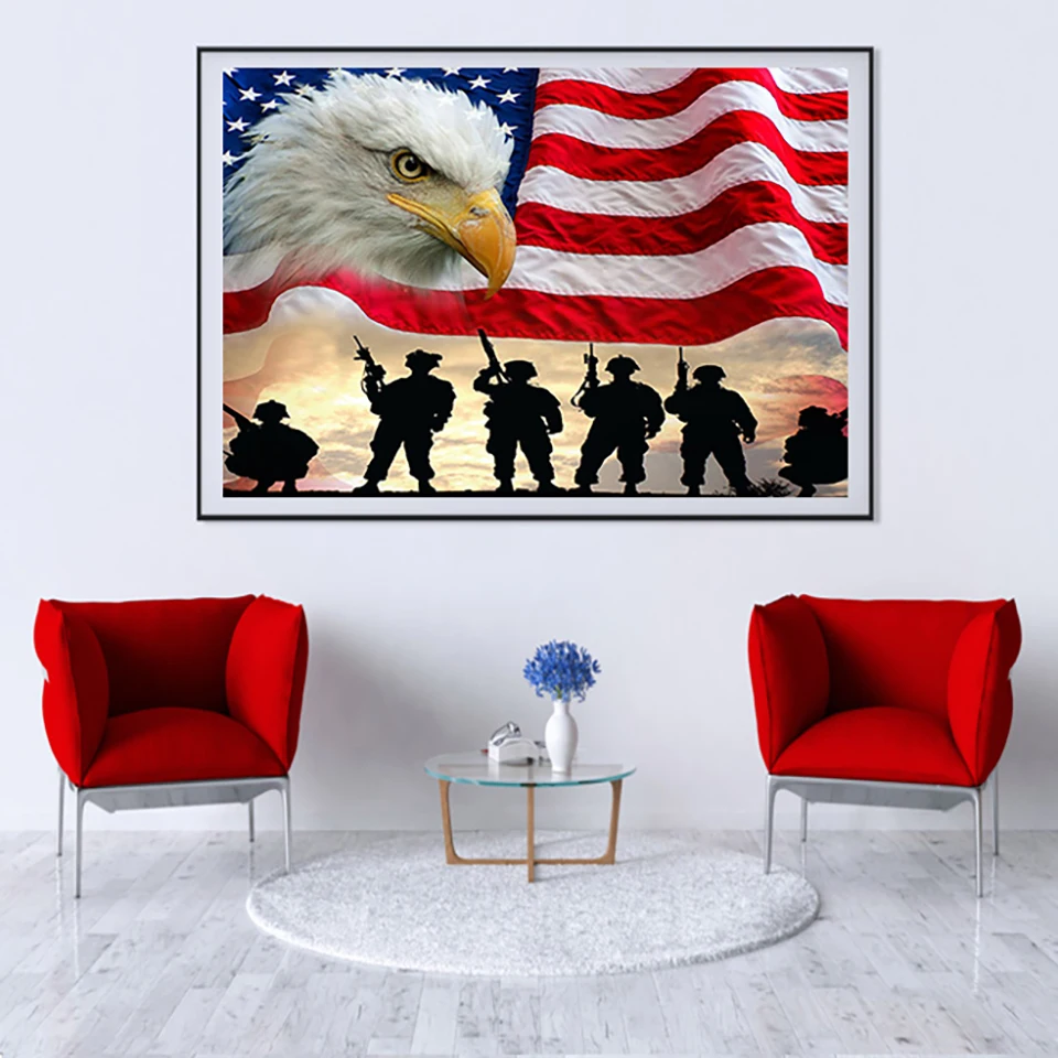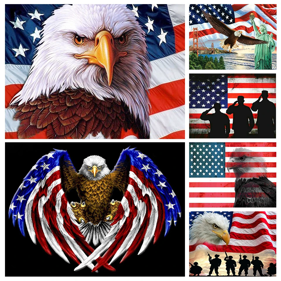 Алмазная картина 5D "сделай сам", парящий квадраткруглая картина с изображением американского флага и орла, Набор для вышивки крестиком, украшение для дома