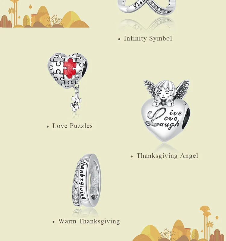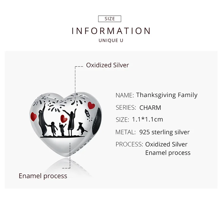 Bamoer Настоящее 925 пробы серебро благодарения Семья Шарм для браслета браслет DIY ювелирные изделия бижутерия ручной работы SCC1634